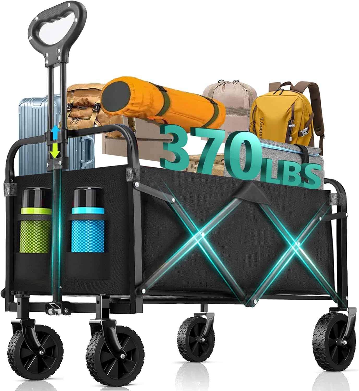 Collapsible Wagon with Wheels, 370lbs Weight Capacity Foldable Beach Wagon with Flexible Handle Portable Utility Wagon Cart for Outdoor, Grocery, Garden, Camping