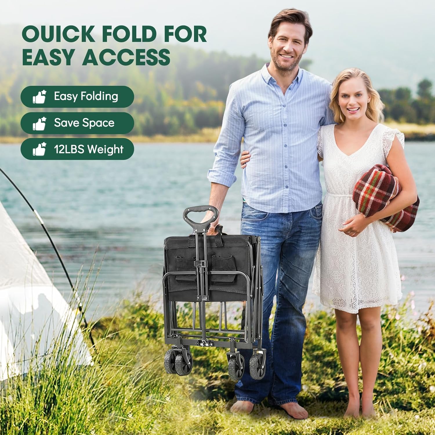 - 【Sturdy & Waterproof Premium Materials】: Made of high-quality 600D premium Oxford fabric, it can hold 370LBS load capacity. The wagon cart is sturdy, long-lasting and water, scratch, tear and wear resistant. Easily handle severe weather and heavy loads conditions. Enjoying outdoor activities with peace of mind