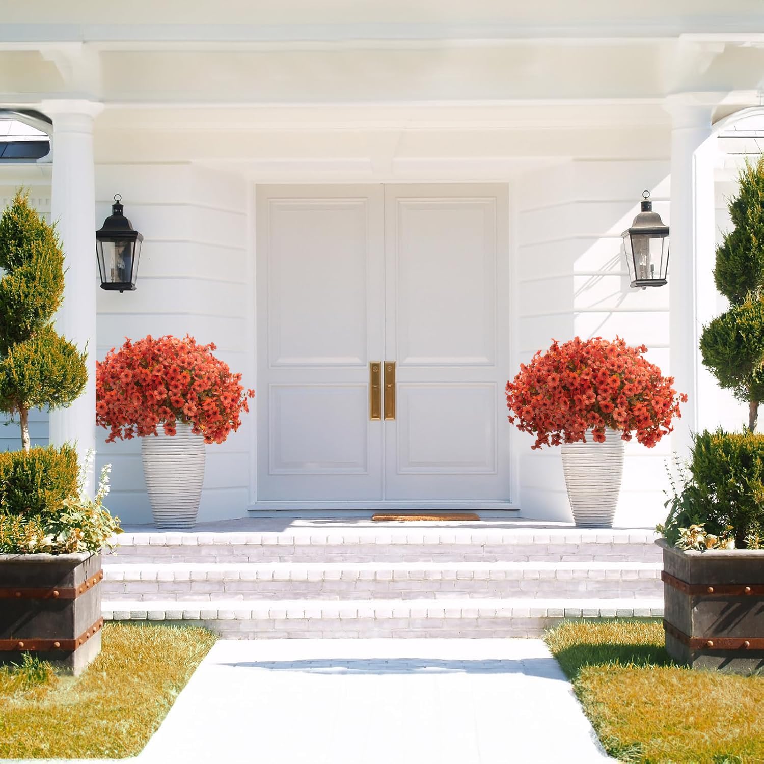 - 🏡 Indoor/Outdoor Versatility: Perfect for porch steps, patio tabletops, garden fences. Easily arrange in planters, window boxes, entryway vases – instantly upgrades fall ambiance.