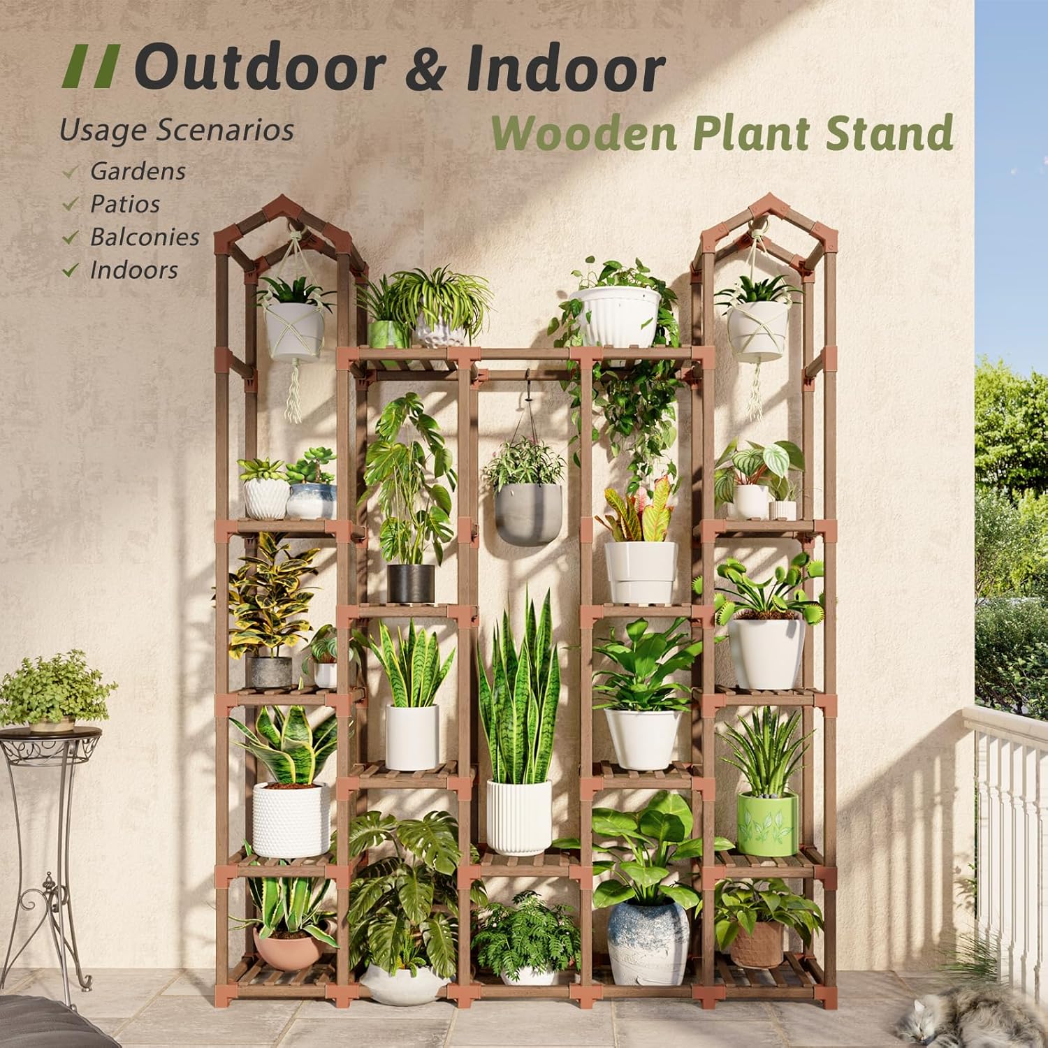 Large Plant Stand Indoor Plant Stands Outdoor Tall Plant Shelf for 18-23 Pots Corner Tiered Plants Stands for Multiple Plants Wood Hanging Plants Holder for Garden Balcony Patio Window Porch