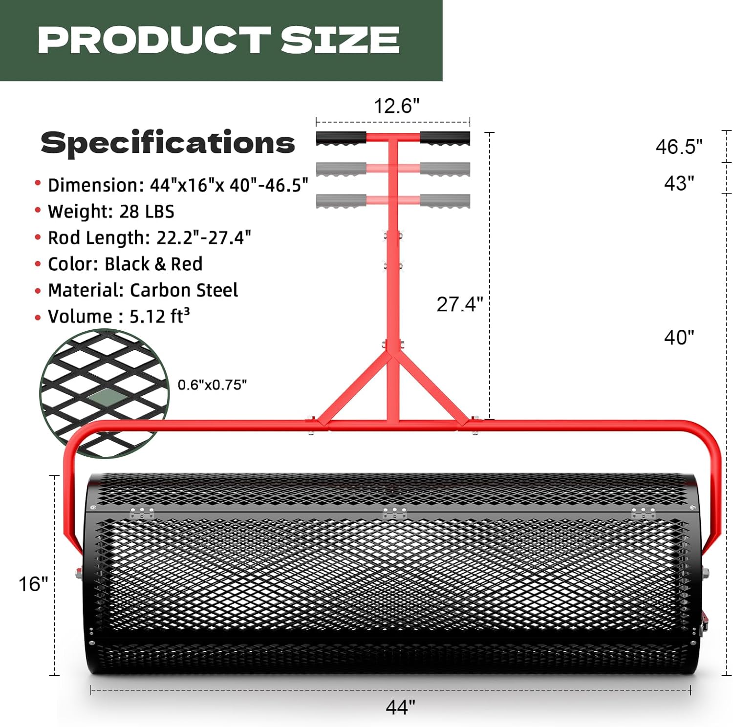 - [Thickened Diamond-Shaped Mesh] Built with a thickened diamond-shaped metal mesh, this Compost Spreader stands up to rugged use. The powder-coated steel frame adds corrosion resistance, ensuring long-term performance of your compost spreader for lawn.