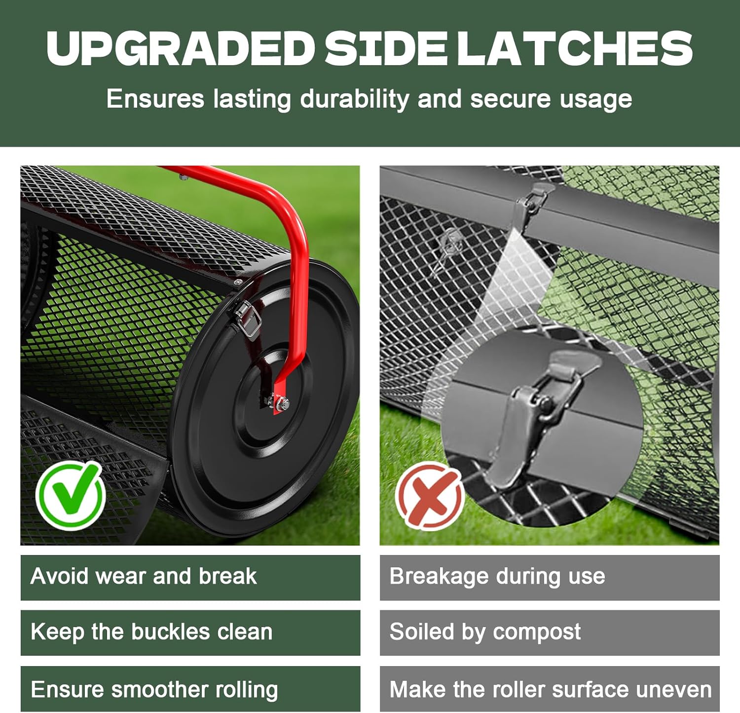 - [Uniform and Efficient Spreading] This 36 inch compost spreader for lawn is engineered for consistent and uniform spreading, enhancing garden soil structure and nutrient absorption. Equipped with a thickened diamond-shaped mesh, it ensures refined particle filtration. A must-have Compost Spreader to achieve lush, healthy lawns and gardens.