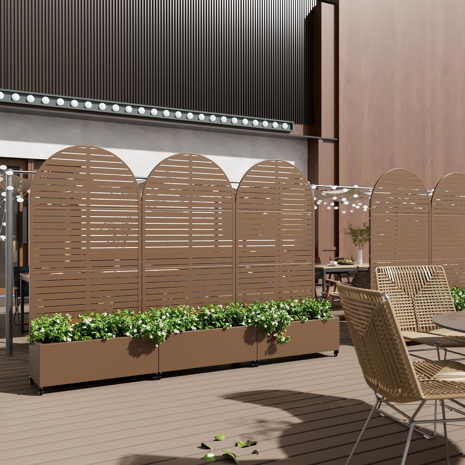 Casaphoria Metal Raised Garden Bed with Trellis and Wheels, 72"x35"x16" Arched Planter Box for Climbing Plants, Vegetables & Vines, Features Drainage Holes and Privacy Screen (Brown-Louvered)
