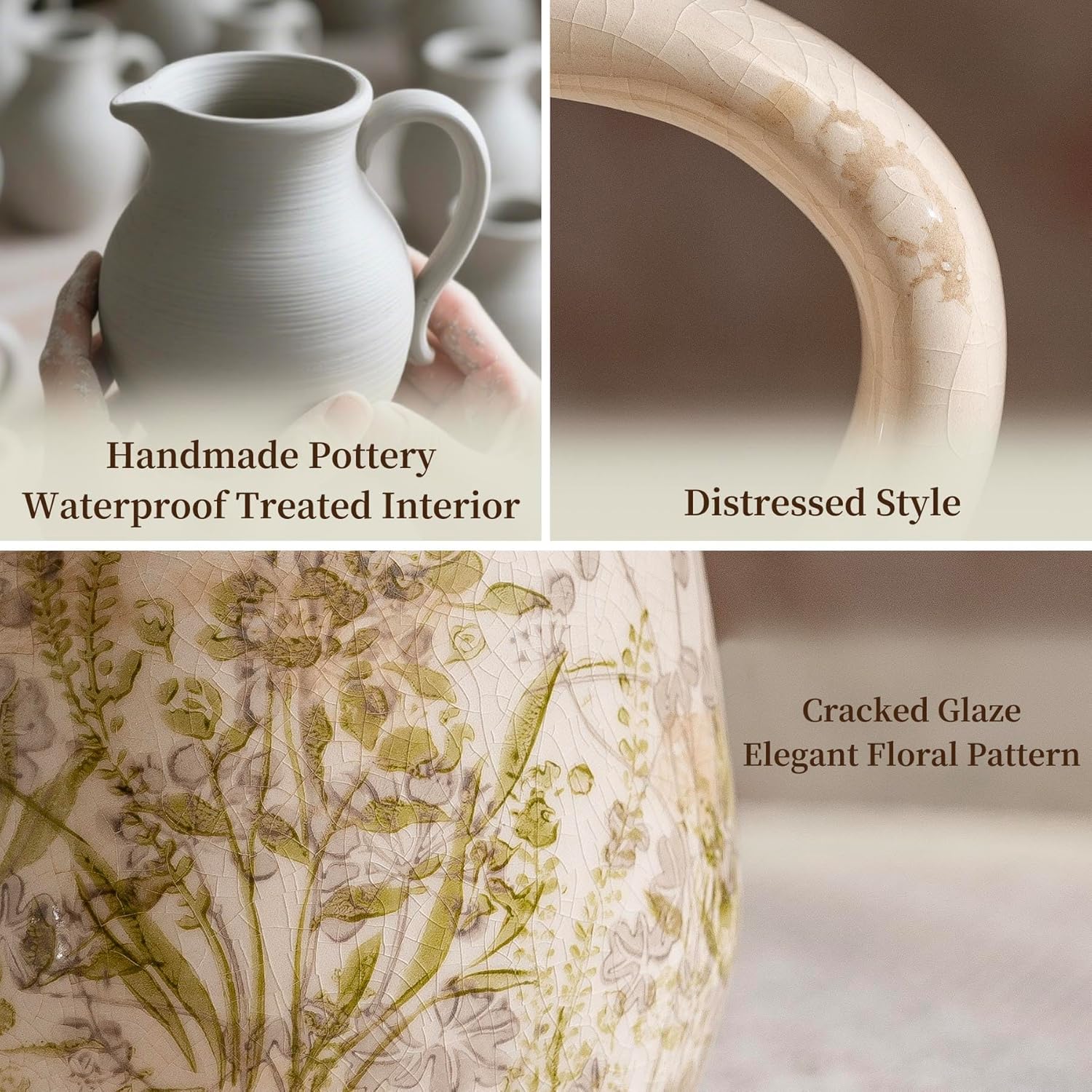 - Functional Handle & Practical Elegance: Designed with an ergonomic handle for effortless carrying and refilling, this pitcher vase simplifies floral arranging. Its stable base and balanced proportions make it a practical yet decorative vase for daily use in kitchens or as a statement living room accent.
