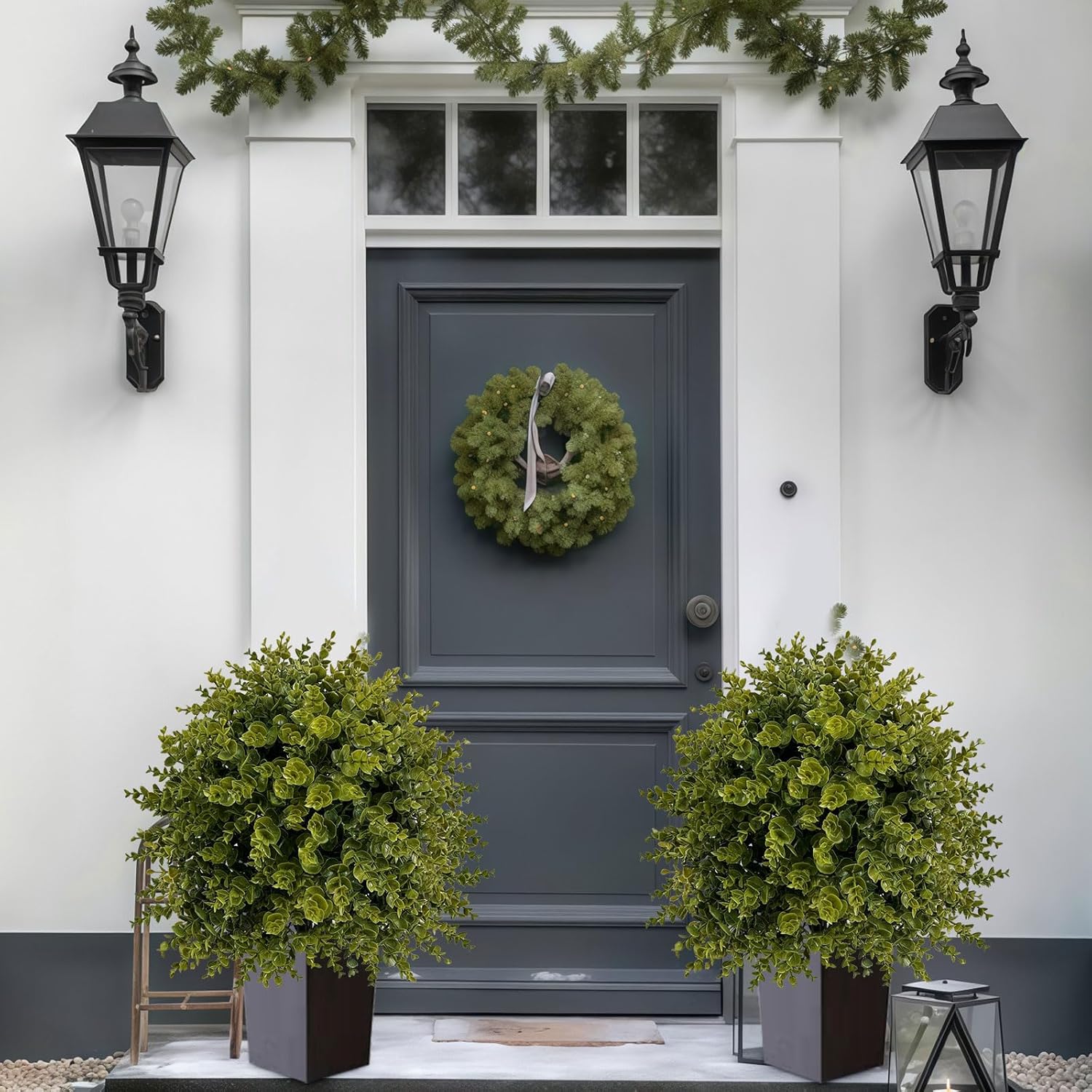 - 【Versatile Outdoor Decor】 Perfect for: UV resistant artificial outdoor plants for patios and gardens. Gift-ready topiary trees artificial outdoor. Porch or entryway artificial shrubs for outdoors. Housewarming or grand-opening gifts.