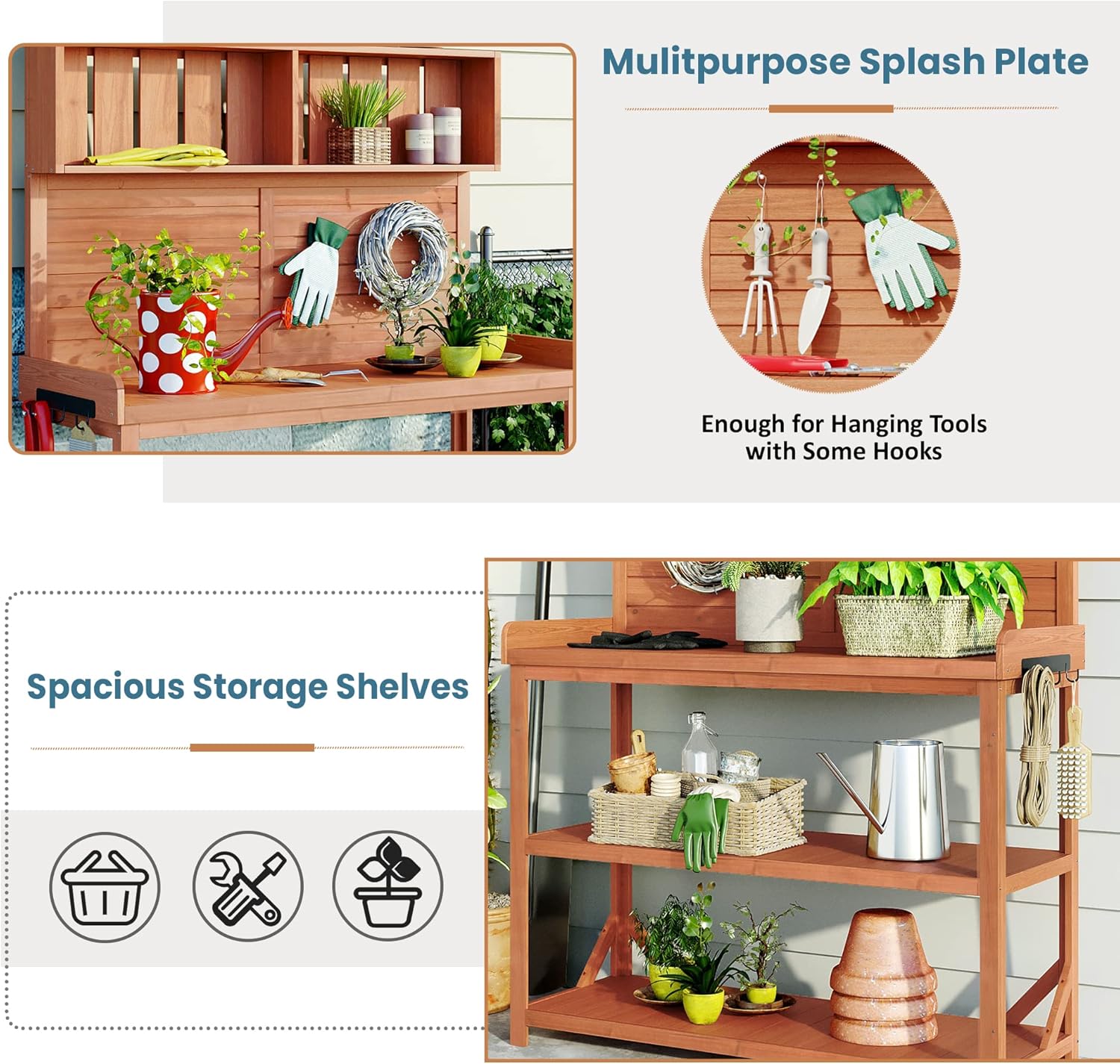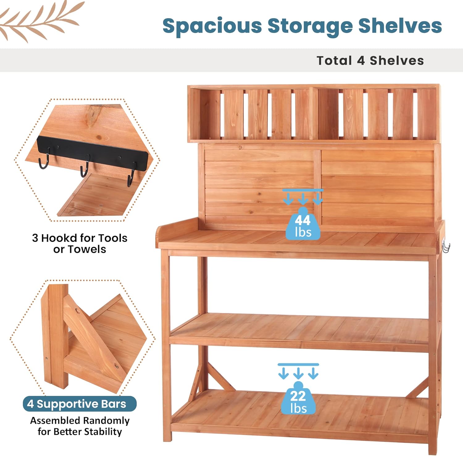 - Spacious & Durable Workstation: Enjoy a generous 46.8" x 18.5" fir wood tabletop, perfect for potting, repotting, and organizing your gardening essentials. Built to withstand outdoor use for years to come!