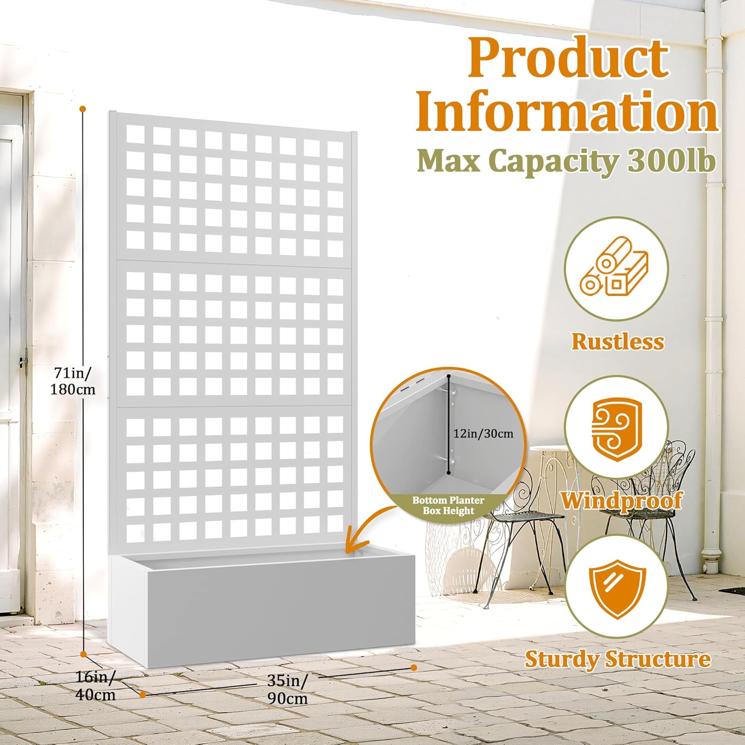 - 🌿【Durable Metal Planter Box for All-Season Gardening】This metal planter box is crafted from rust-resistant galvanized steel, ensuring durability and strength in all weather. Whether you’re growing tomatoes or roses, this garden raised bed for climbing plants offers reliable support. The integrated structure transforms your outdoor space into a stylish metal planter with privacy screen, and the sturdy frame makes this metal planter box with trellis a lasting garden feature.