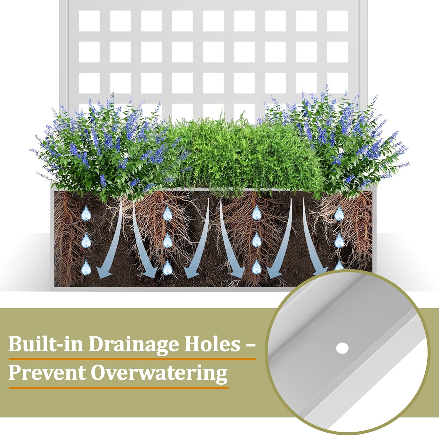- 💧【Spacious and Efficient Planting Area】Enjoy abundant space in this metal planter box with trellis, ideal for vegetables, herbs, and climbing flowers. Drainage holes prevent waterlogging, making it a perfect garden raised bed for climbing plants. With its vertical structure, this metal planter with privacy screen allows you to grow upward, saving ground space. Plus, this metal planter box with trellis is great for small patios or urban gardens.