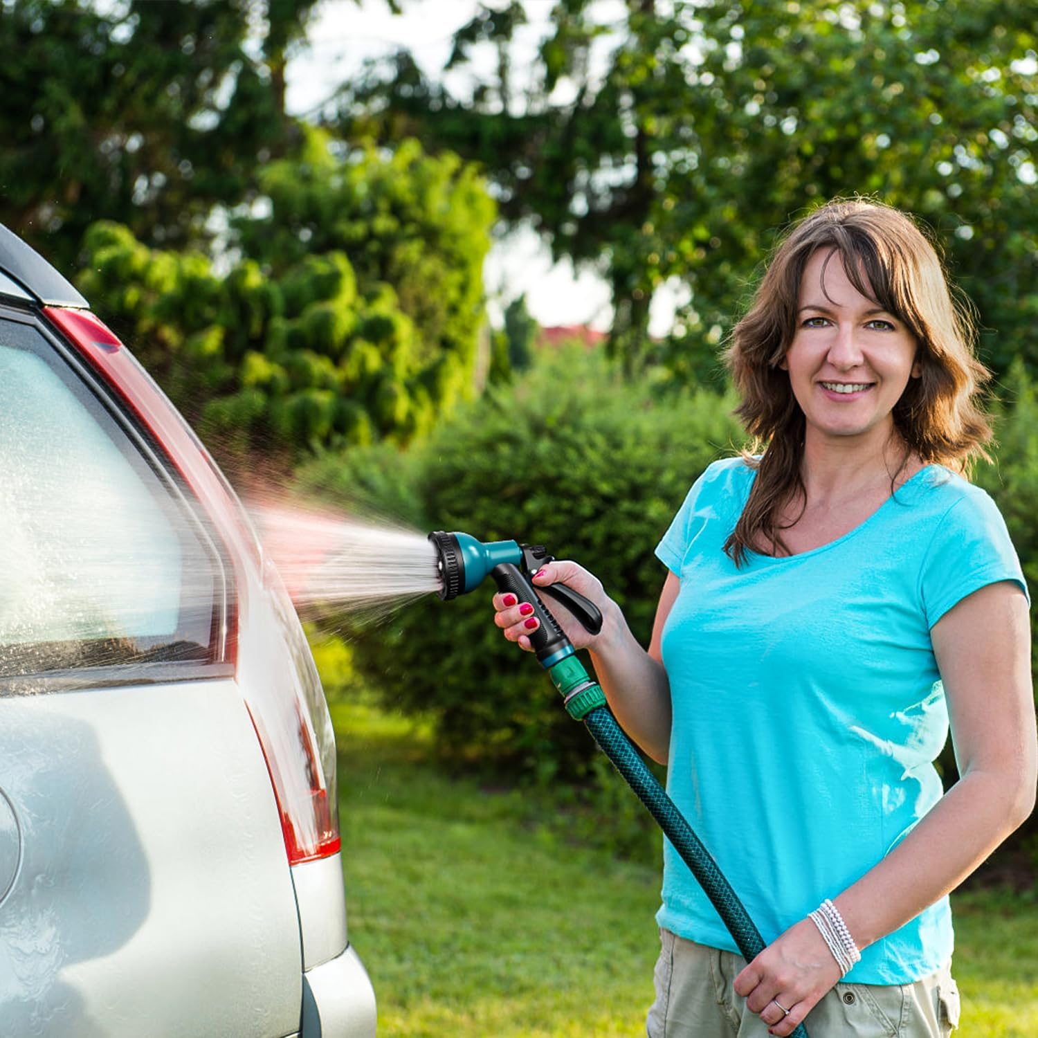 - UNIVERSAL HOSE COMPATIBILITY: Designed to fit all standard US garden hoses (3/4"). Includes premium rubber washers to prevent leaks and ensure water-tight connections. Quick-screw installation requires no tools - simply attach and start spraying.
