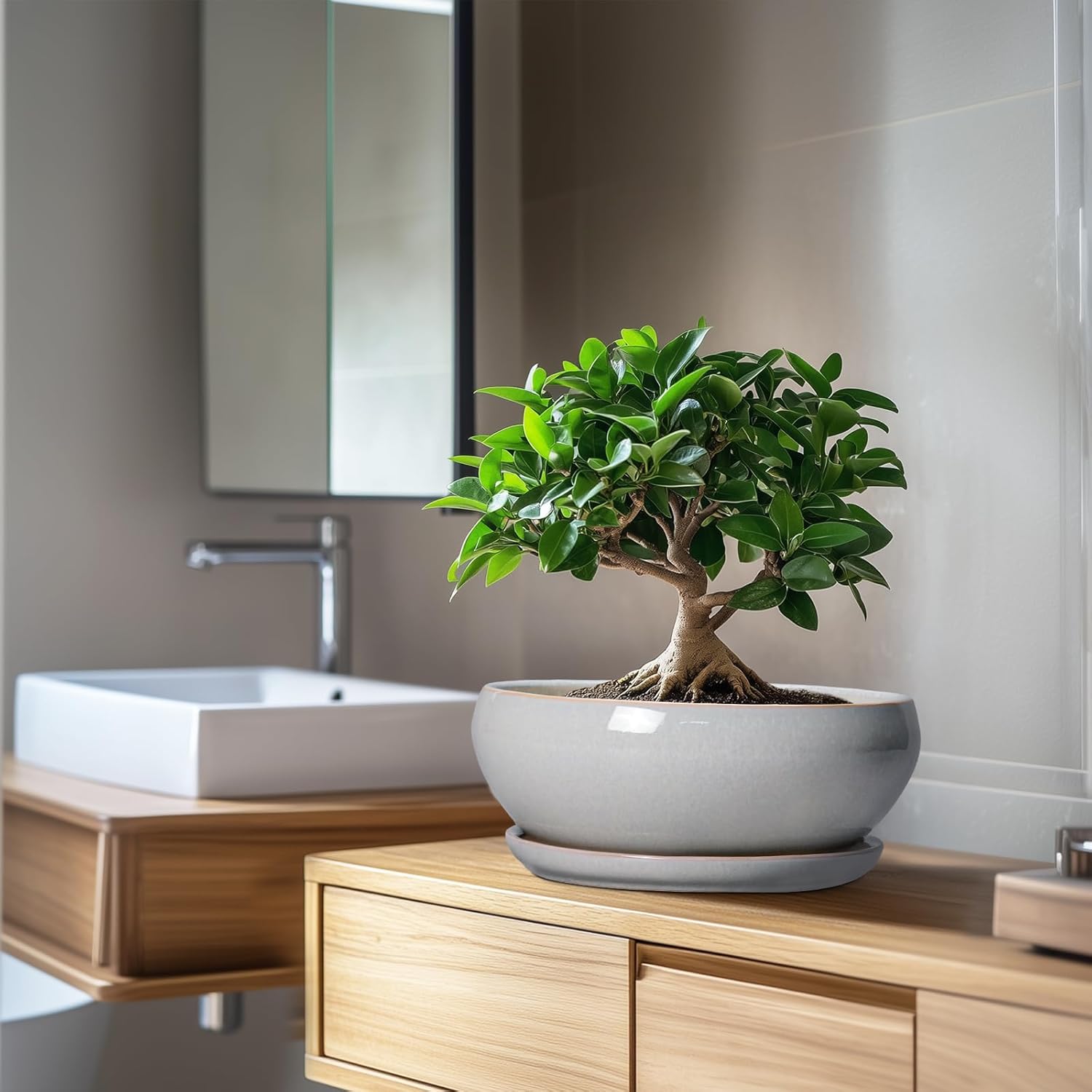 - Suitable for A Variety of Plants: This 10 inch plant pot are great for bonsai, ficus bonsai, succulents, orchid, cactus, herbs, aloe vera, basil plants, mint plants, rosemary plant, jade plant, azalea, pothos plants, agave plants, schefflera plants, etc