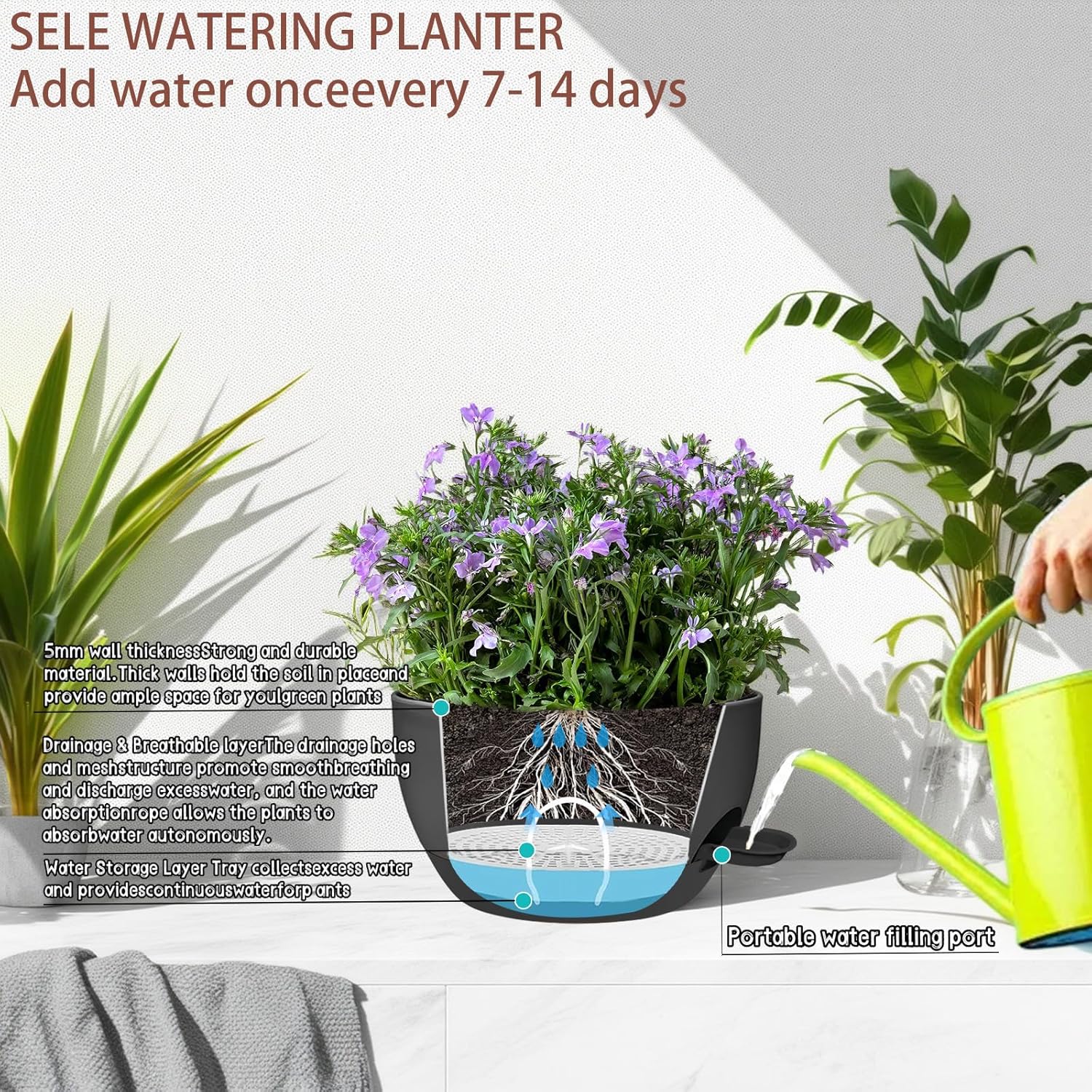 - ✅ 2 Large Self-Watering Planters: Double the value! Includes two 12-inch wide plastic hanging planters with built-in self-watering reservoirs to reduce the need for frequent watering and keep plants healthier.