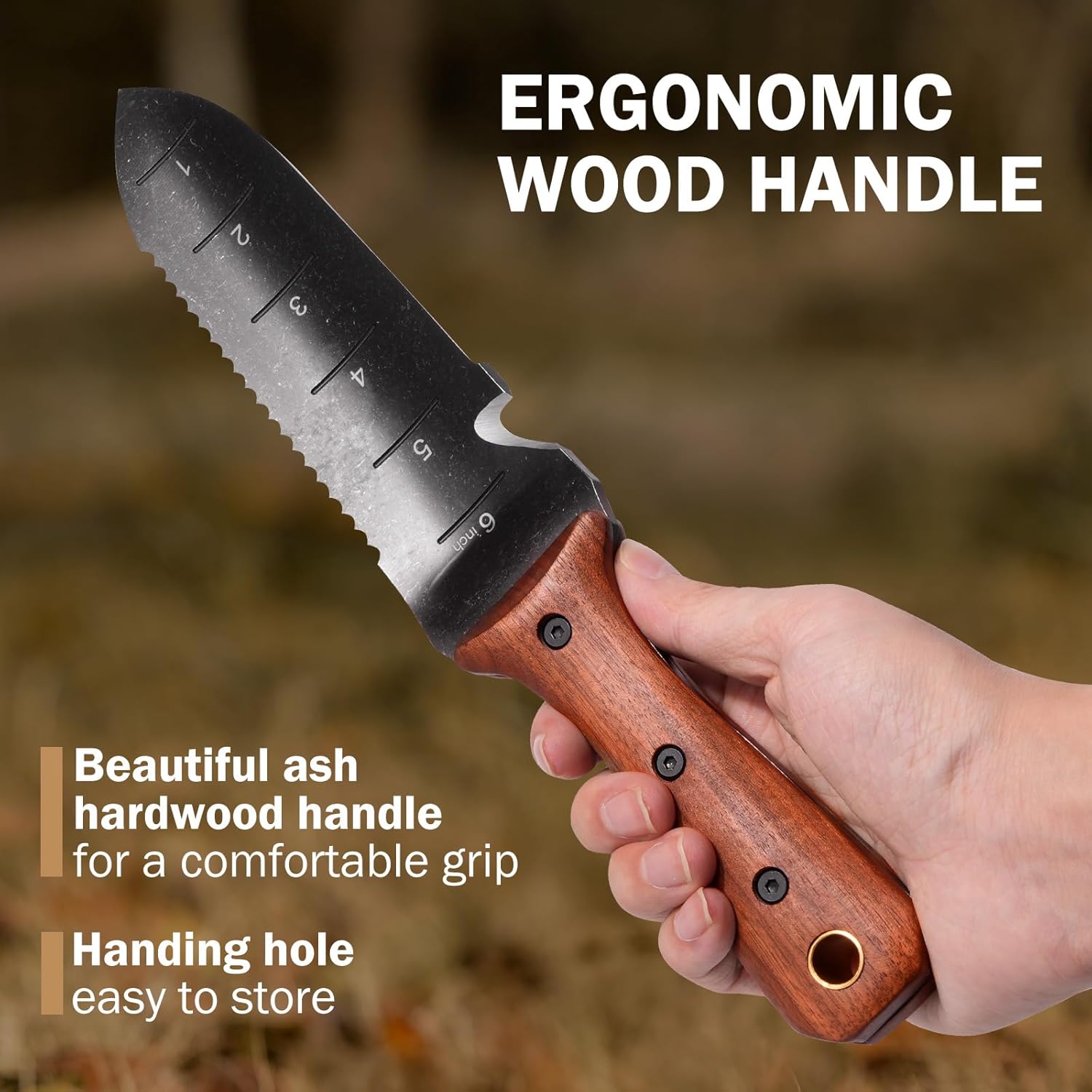 - Wonderfully Versatile: Hori Hori garden knife for every job in the garden, weed puller tool ,use it for digging, transplanting, sawing, cutting, removing, dividing, and even measuring soil depth for planting.
