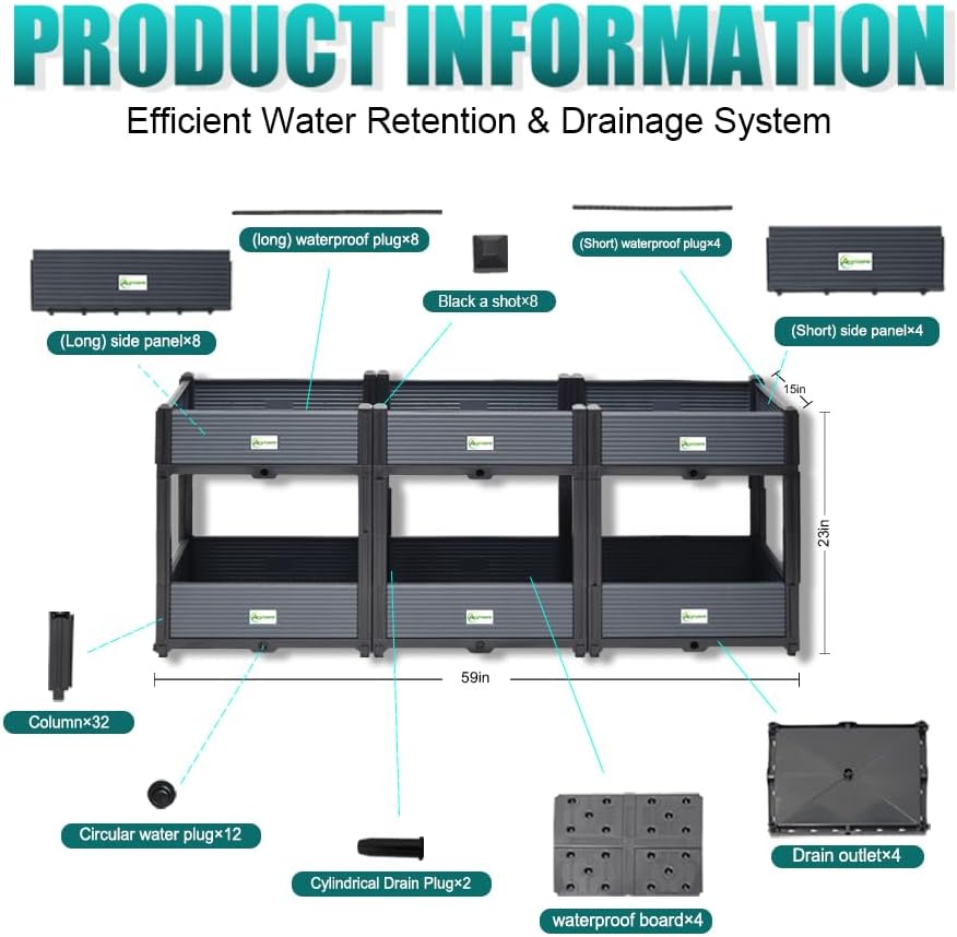 - 【Versatile for Any Space】Perfect for balconies, patios, backyards, greenhouses, gardens, and indoor spaces. Whether you're growing vegetables, herbs, or flowers, this raised bed adapts to your lifestyle.