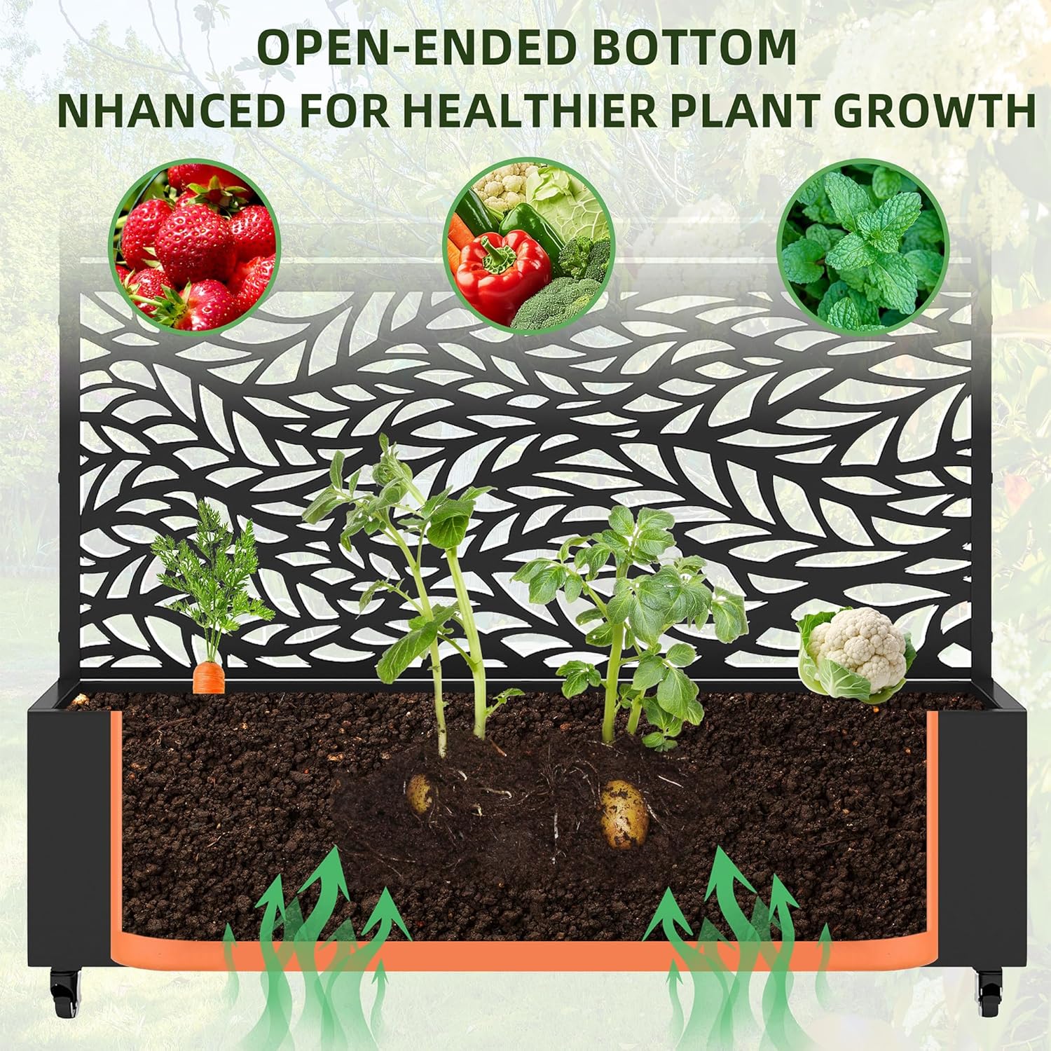 Casaphoria Metal Raised Garden Bed with Trellis and Wheels, 72"x47"x16" Planter Box for Climbing Plants, Vegetables & Vines, Features Drainage Holes and Privacy Screen, Black(Spring&Louvered)