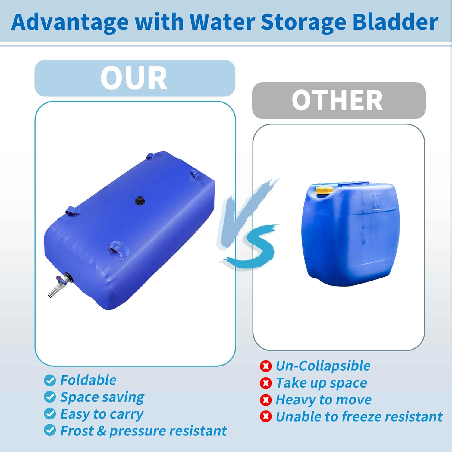 - [Reliable Quality] This water storage bag adopt with reliable nylon silk with a 1000D double-sided PVC, lightweight for portable carry. The interface and port have high frequency welded seal and reinforced seam, with high density coating aim for no leakage, ensure the reliable water storage for emergency and daily use.