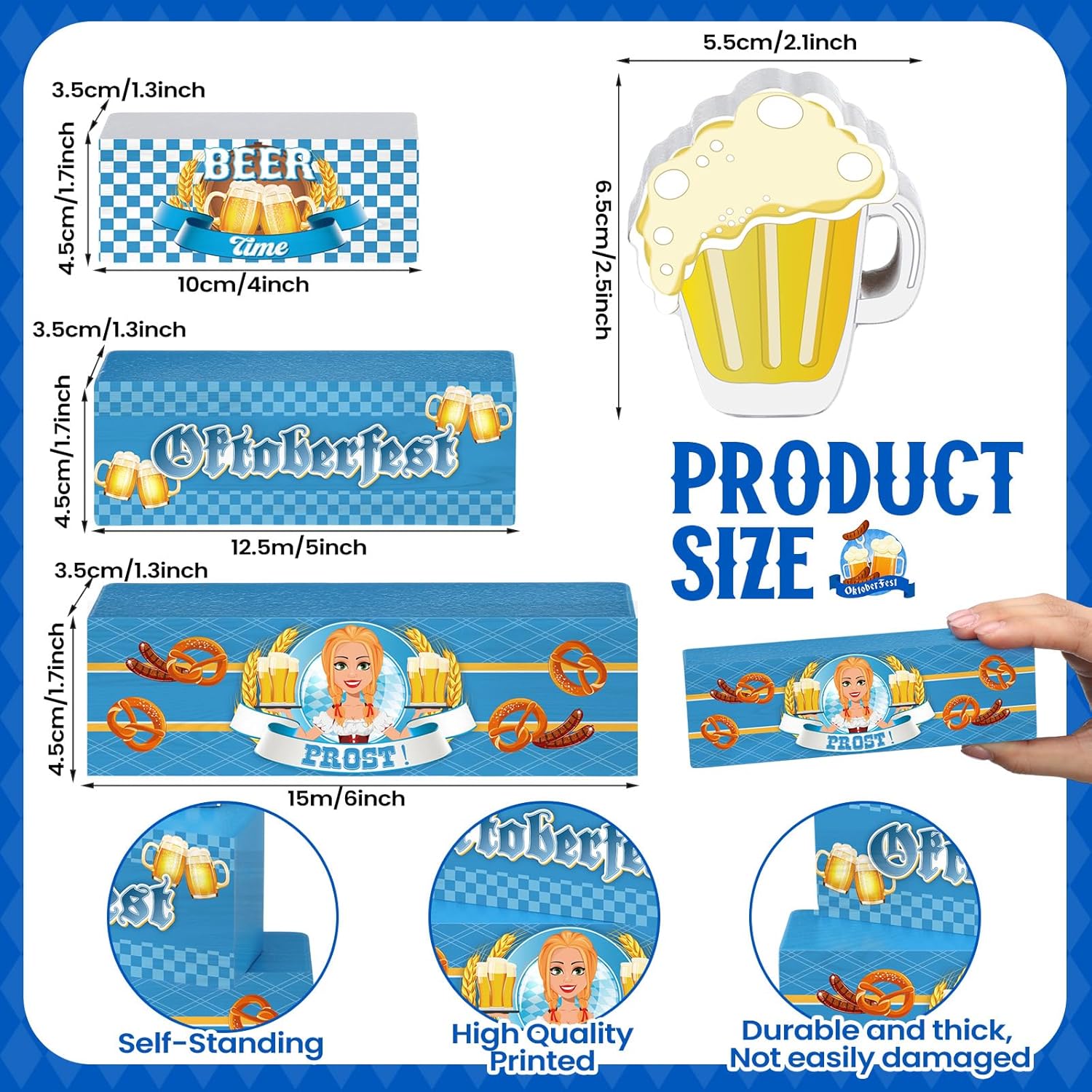 - Celebrate Oktoberfest Decorations: our Oktoberfest table centerpieces incorporate elements such as classic blue and white checkered patterns, beer mugs, pretzels, and the vibrant "Oktoberfest" word, all of which are vivid tributes to Oktoberfest; The carefully crafted wooden decorations add a touch of Oktoberfest fun to any room