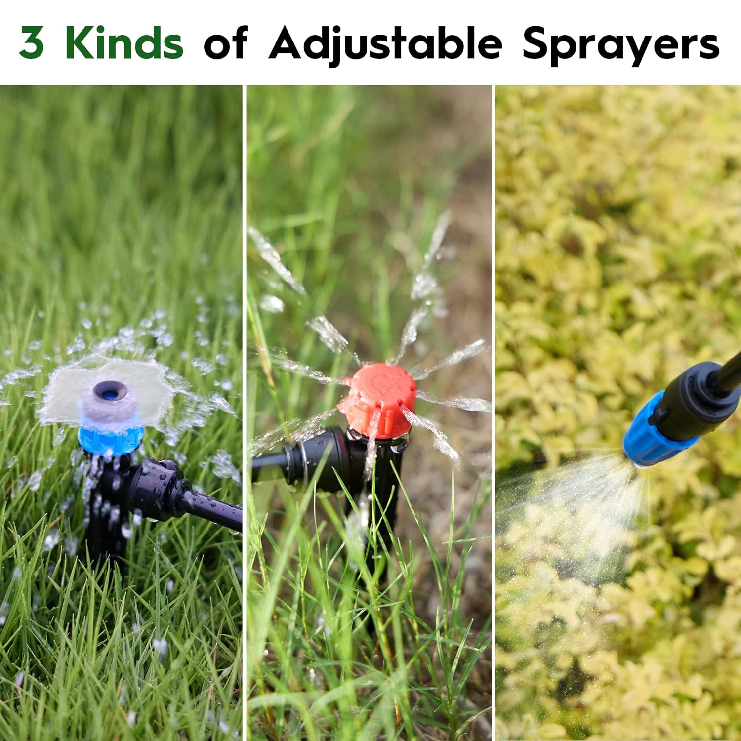 - Easy to Install and Built to Last: This Irrigation Kit is easy to install. Just cut the tube, connect the nozzle or drip emitters to the fitting and turn on the faucet to start the plant drip irrigation system. Drip Irrigation Sprinkler heads are removable and easy to clean, so you don't have to worry about clogging, making them perfect for long-term use.