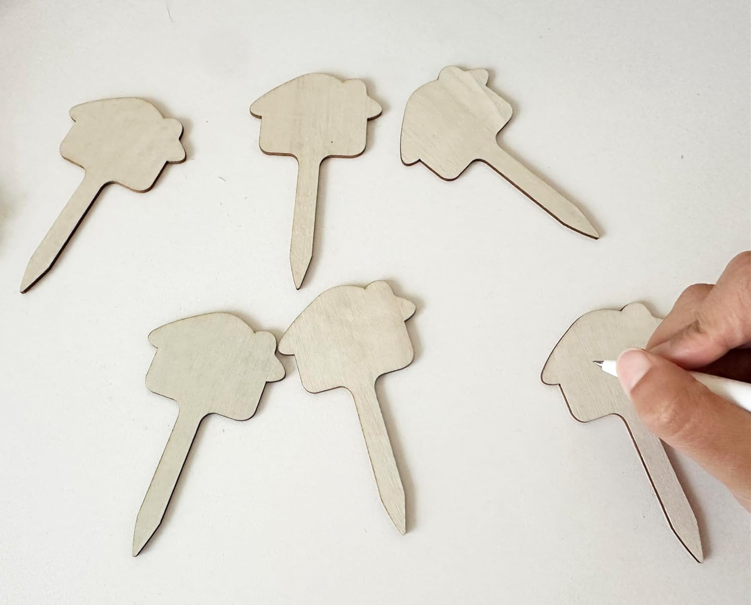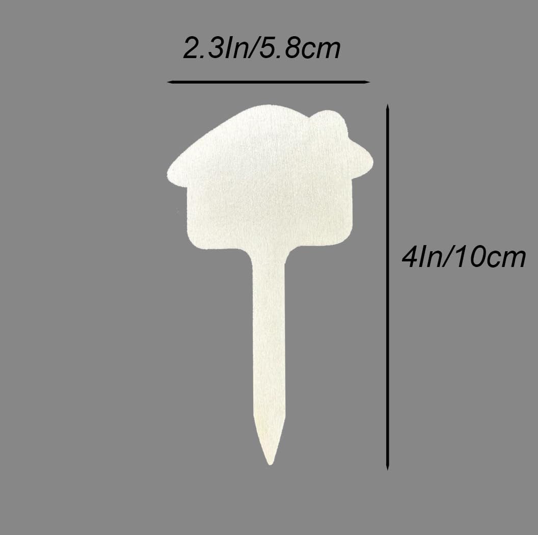 100 Pcs Wood Plant Labels, Natural Wooden Plant Marker Garden Sign Tags, T-Type Garden Markers for Succulents, Herbs, Seedlings, Potted, Flowers, Vegetables (House)