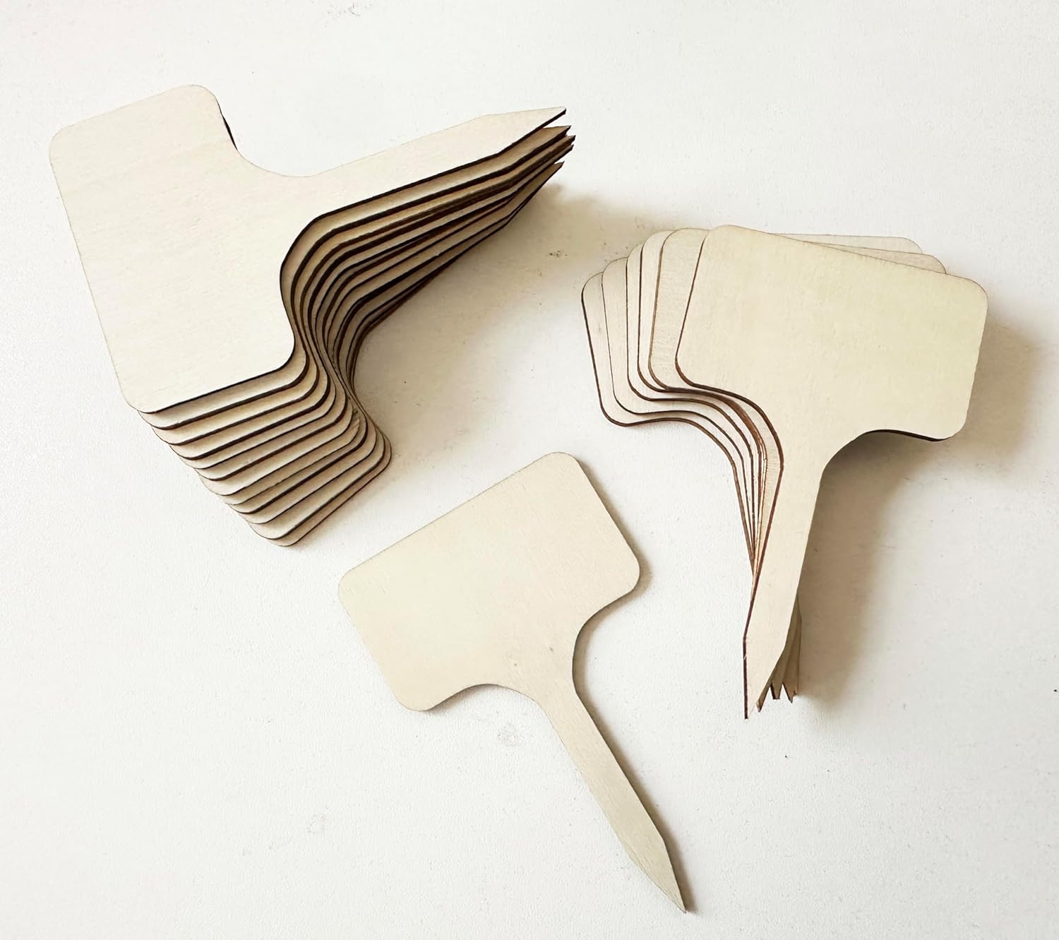 100 Pcs Wood Plant Labels, Natural Wooden Plant Marker Garden Sign Tags, T-Type Garden Markers for Succulents, Herbs, Seedlings, Potted, Flowers, Vegetables (T-Type)
