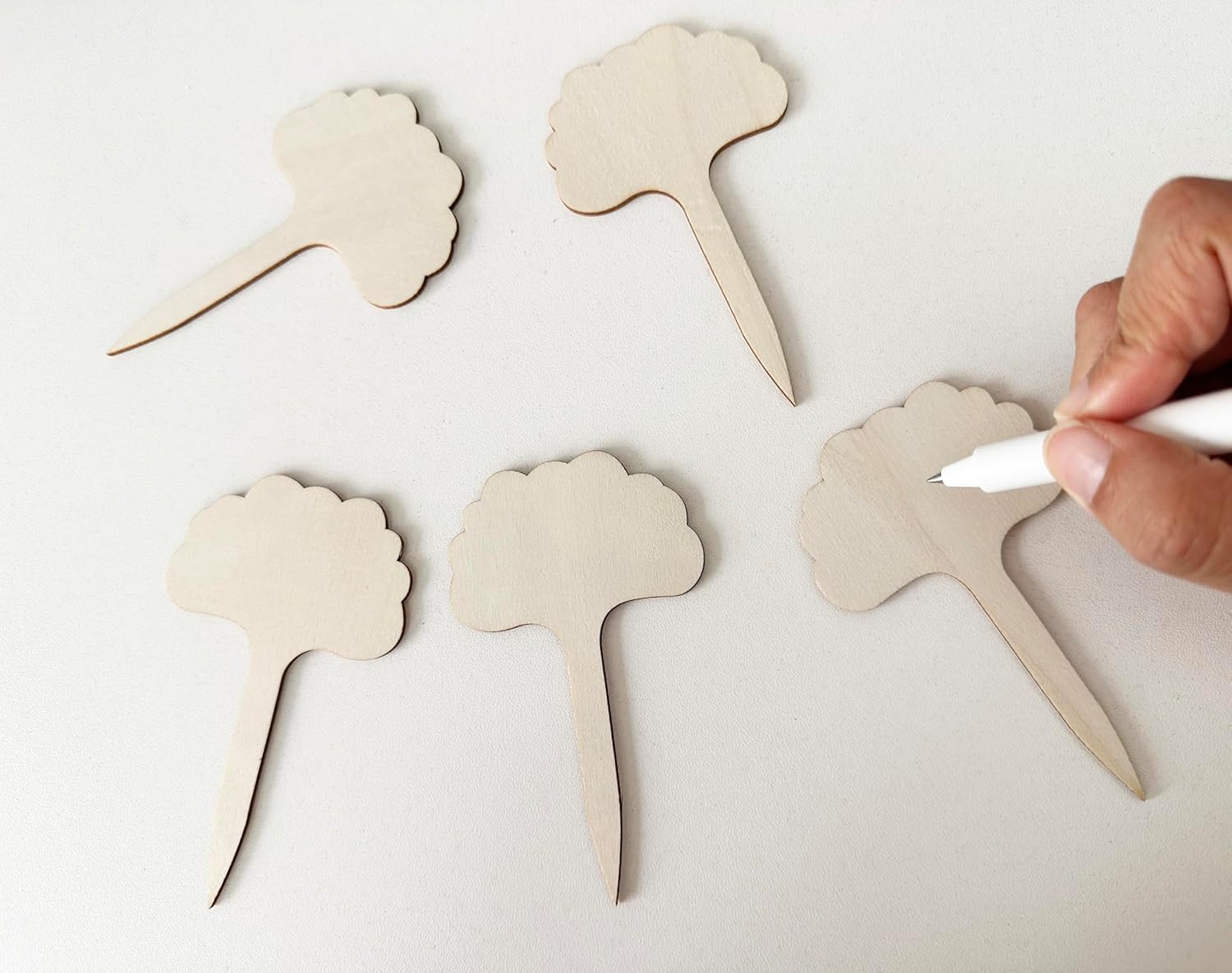 100 Pcs Wood Plant Labels, Natural Wooden Plant Marker Garden Sign Tags, T-Type Garden Markers for Succulents, Herbs, Seedlings, Potted, Flowers, Vegetables (Cloud)