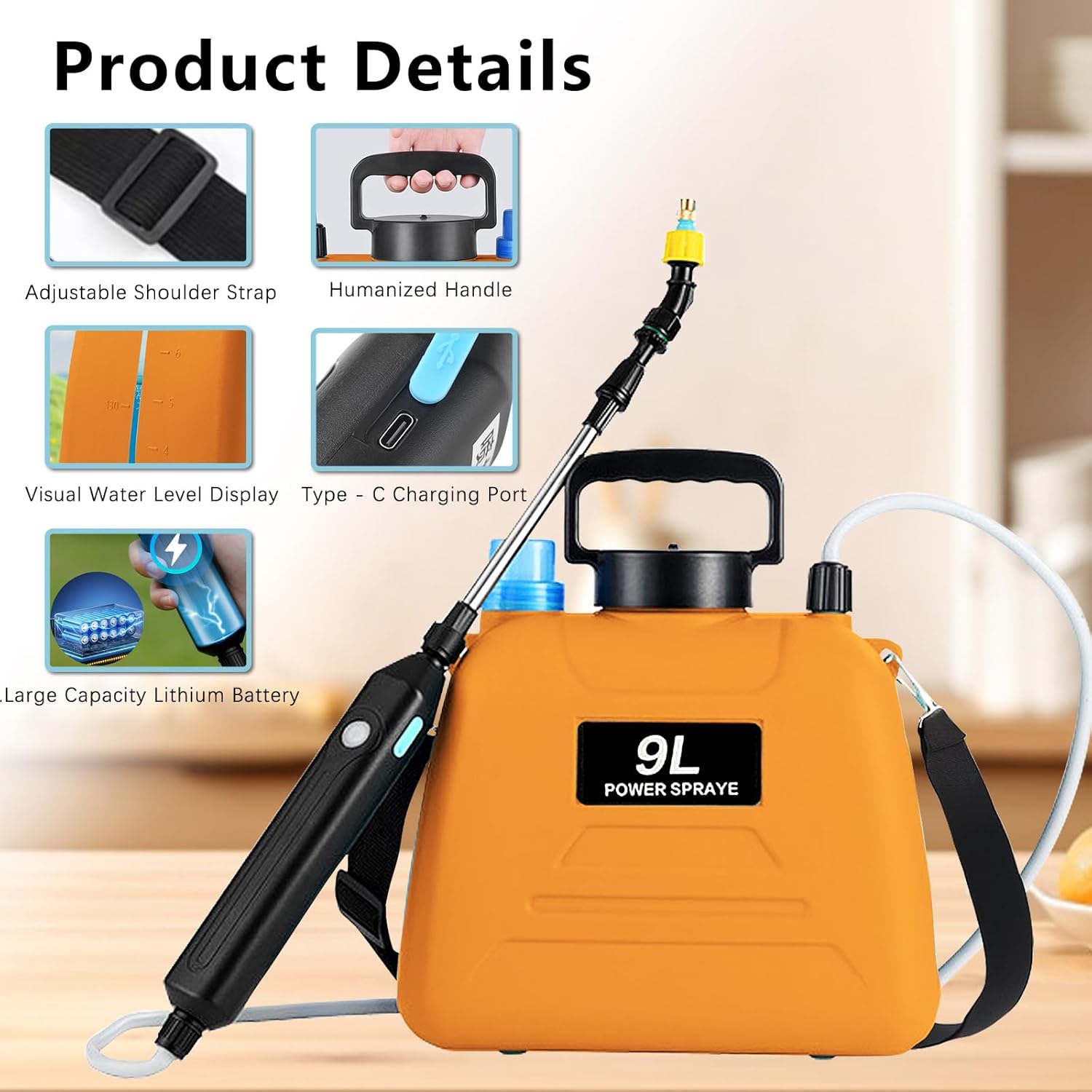 - 🛡️ Durable Build & Ergonomic Comfort – Built to Last:Crafted from premium HDPE and ABS materials, this 2.4-gallon sprayer is tough enough for indoor and outdoor use. The ergonomic handle ensures fatigue-free grip, even during extended sessions. Plus, the built-in filter prevents clogging, delivering smooth and consistent performance every time