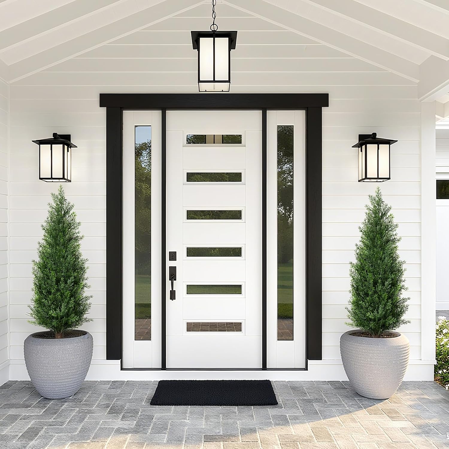 3FT Artificial Cedar Topiary Trees with Ground Spike, Set of 2 UV Resistant Fake Evergreen Bushes Shrubs Trees Artificial Plants Realistic Faux Cypress Plants for Indoor Outdoor Front Porch Garden