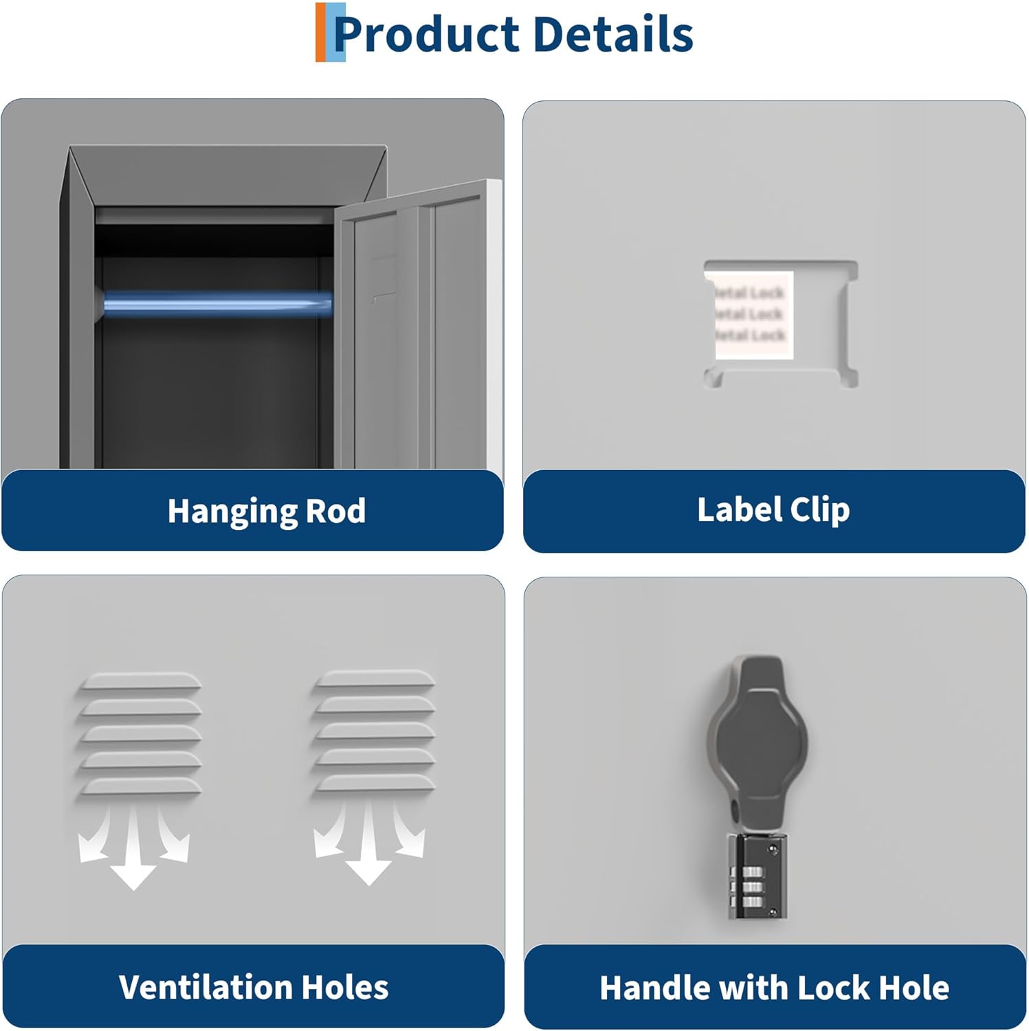 - Ventilated Design: Each metal locker door is equipped with built-in louvers that promote airflow, reducing moisture and odors to keep stored items dry and fresh