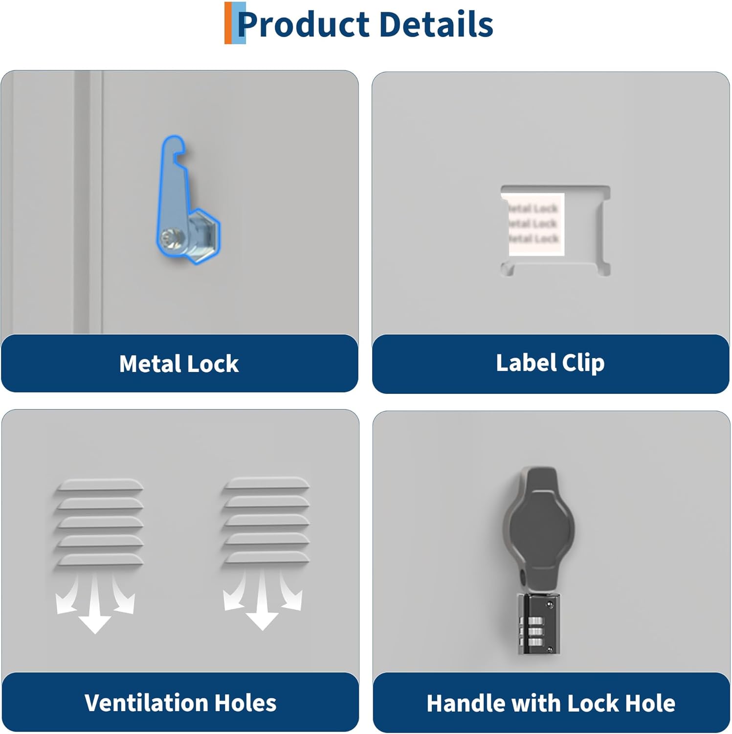- Ventilated Design: Each metal locker door is equipped with built-in louvers that promote airflow, reducing moisture and odors to keep stored items dry and fresh