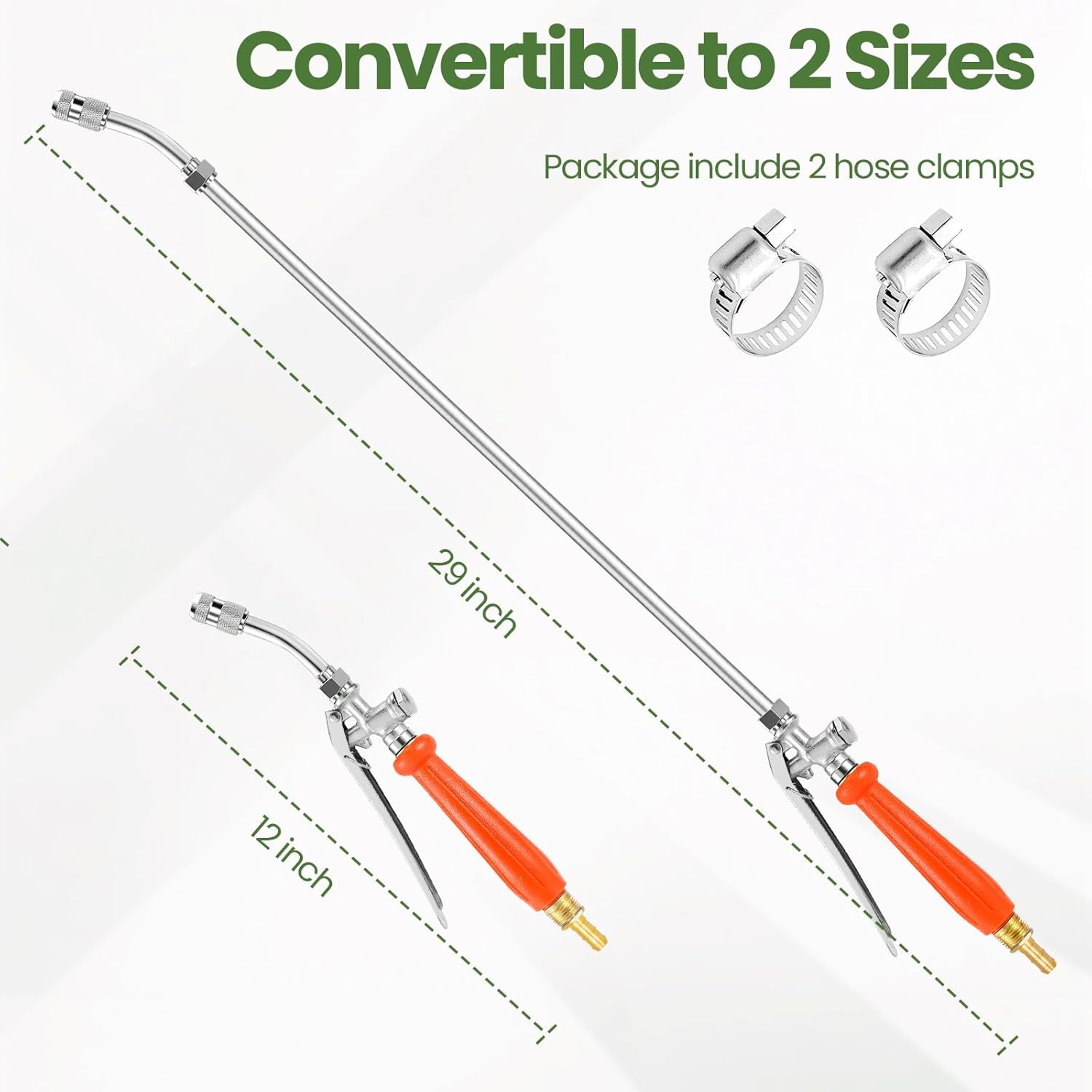 - 【29" All Metal Sprayer Wand】Our sprayer wands are all made of high quality metal for durability, plus our products are equipped with rubber grips for superior slip resistance. You can freely assemble & adjust the flexible sprayer wand to get 12 inches, 29 inches. Our garden hose sprayer makes it easy to clean cars, roof tops, high places, over obstacles without bending over or limitation of reach.