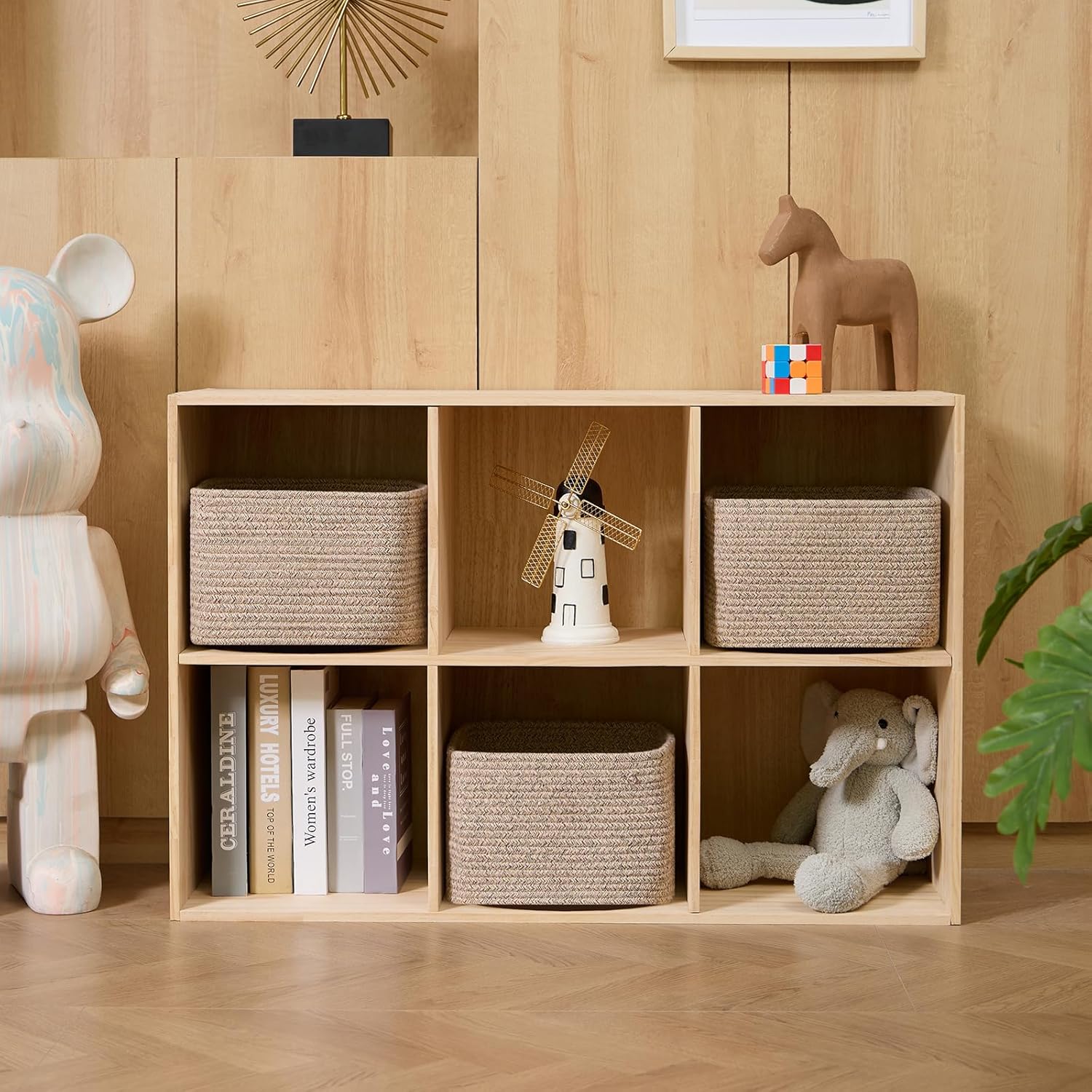 - [Compact Size]: Measuring 9.7 x 9.7 x 7.1 inches, these shelf baskets are designed to hold various small items around the house. Each set of 3 baskets is perfect for organizing intimate clothing, books, towels, cosmetics, toys, snacks, and other small items