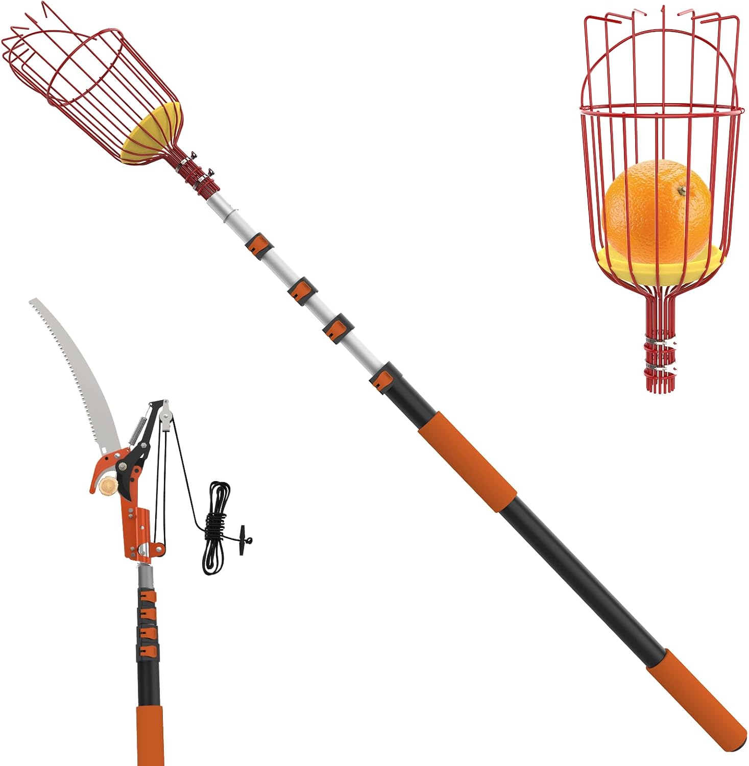 - Lightweight, Sturdy, and Durable: Crafted from high-quality materials, this fruit picker pole features a stable and relatively lightweight overall structure. The unique flip-lock design ensures the pole doesn't bend easily when extended. The non-slip handle at the bottom provides a superior fruit picking pole experience, making it a sturdy and durable fruit picker and tree pruner.