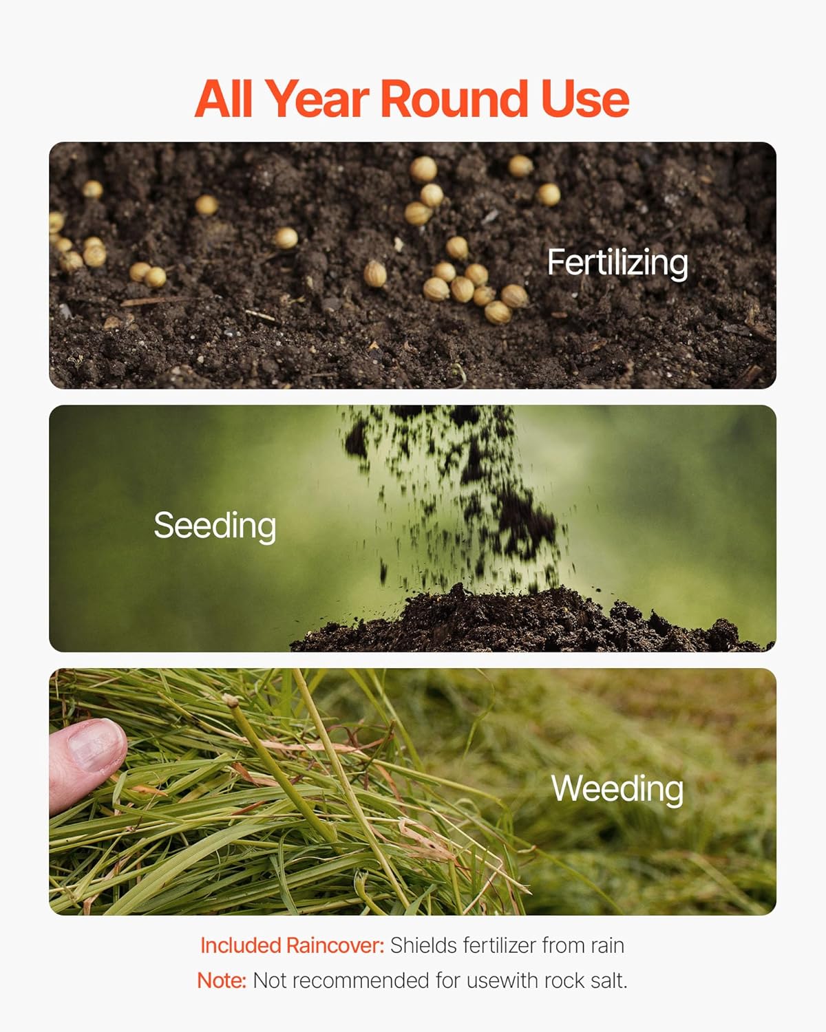 - All-Year-Round Versatility: Our garden seed spreader deal for spring seeding, summer fertilizing, replacing four tools with one. Suitable for home lawns and small farms.