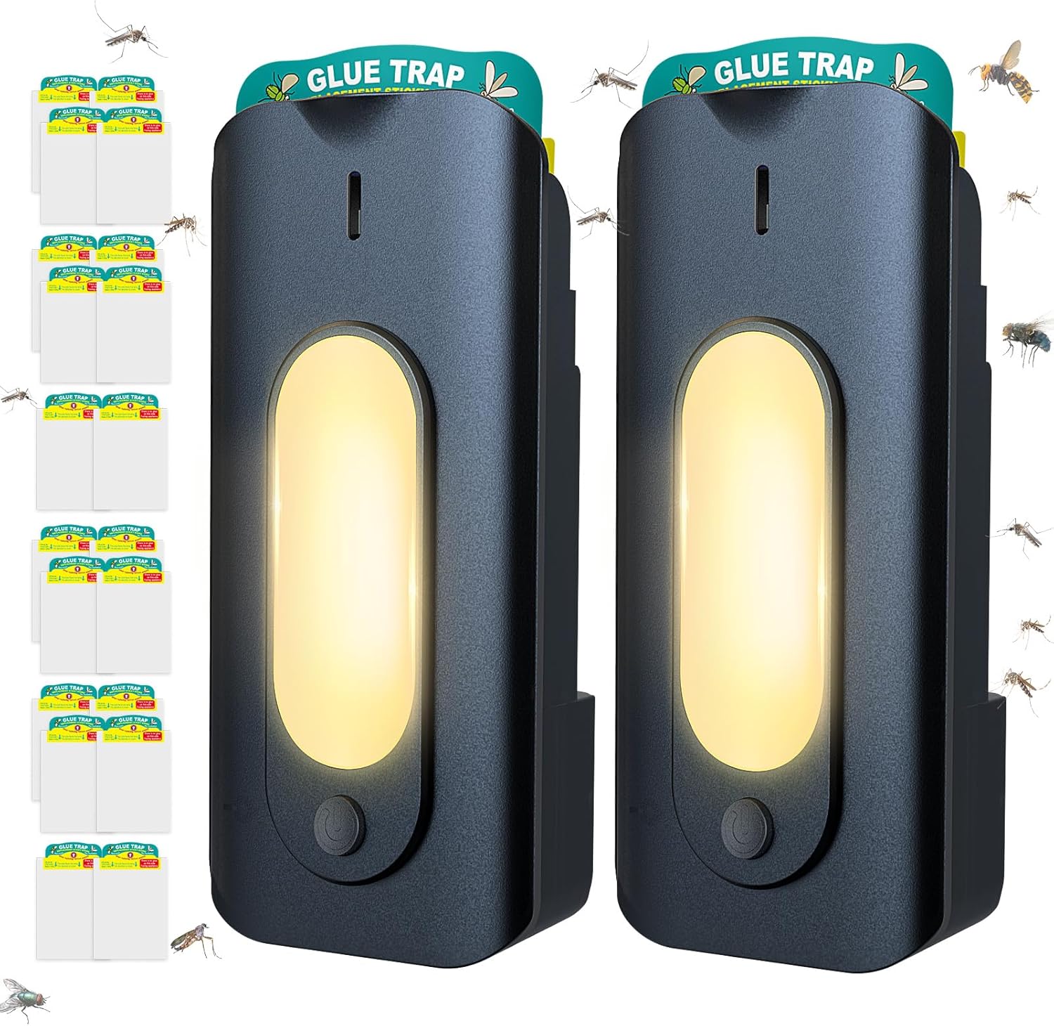Fruit Fly Trap for Indoors-2PCS, 2 in 1 Fly Trap Indoor with Night Light for Home with 20 Refills, Gnat Traps for House Indoor, Plug-in Insect Trap for Gnats, Flies, Moths-Black
