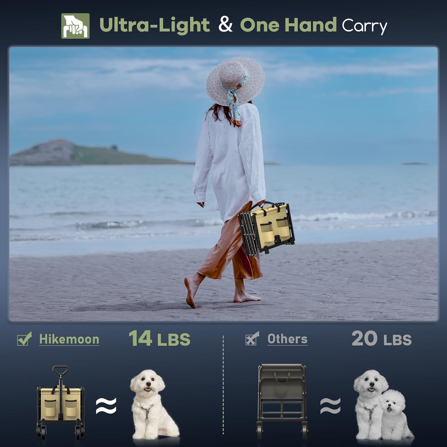 - 【𝟑𝟒" 𝐄𝐱𝐭𝐫𝐚 𝐋𝐨𝐧𝐠 𝐋𝐢𝐠𝐡𝐭𝐰𝐞𝐢𝐠𝐡𝐭 𝐖𝐚𝐠𝐨𝐧 𝐰𝐢𝐭𝐡 𝟏𝟐𝟎𝐋 𝐂𝐚𝐩𝐚𝐜𝐢𝐭𝐲】: Featuring a patented design, this wagon is 50% longer than standard wagons. Its spacious interior easily accommodates long items like folded tents. Despite its large capacity, it weighs only 14 lbs, making it 40% lighter than other wagons! You can carry this portable wagon effortlessly.