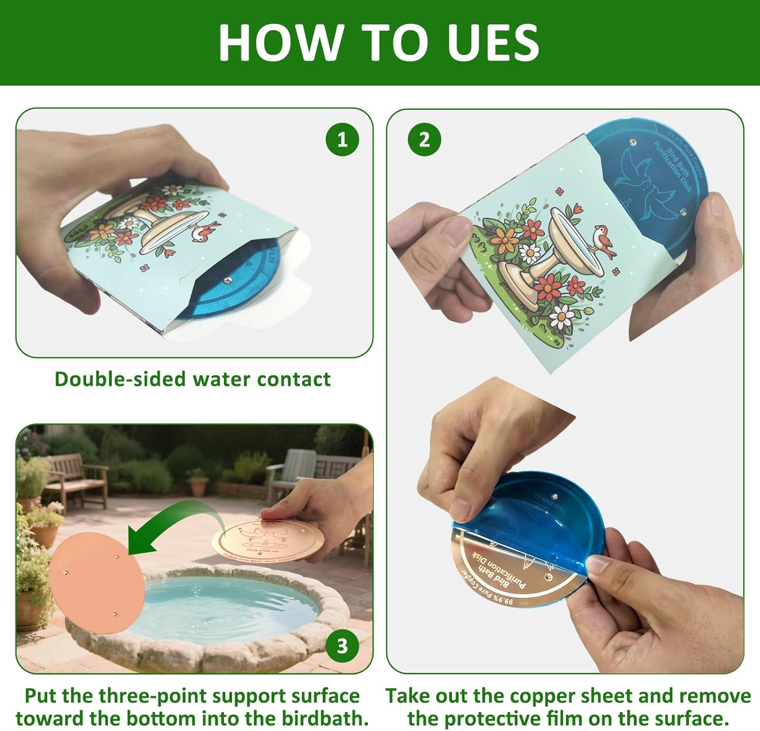 - 【0.6mm Thick & Durable, Long-Lasting Use】Crafted with 0.6mm thick pure copper, this disk is sturdy and resistant to deformation, ensuring long-term outdoor use. The solid material maintains stable performance, providing reliable water purification without easy wear, making it a cost-effective solution for your bird bath