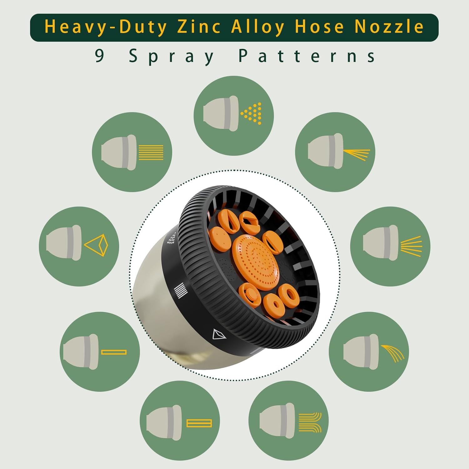 - 【9-Spray Garden Hose Nozzles】Switch between patterns from jet to mist with ease. These versatile spray nozzles for garden hose are ideal for car washing, plant watering, and all outdoor cleaning needs.