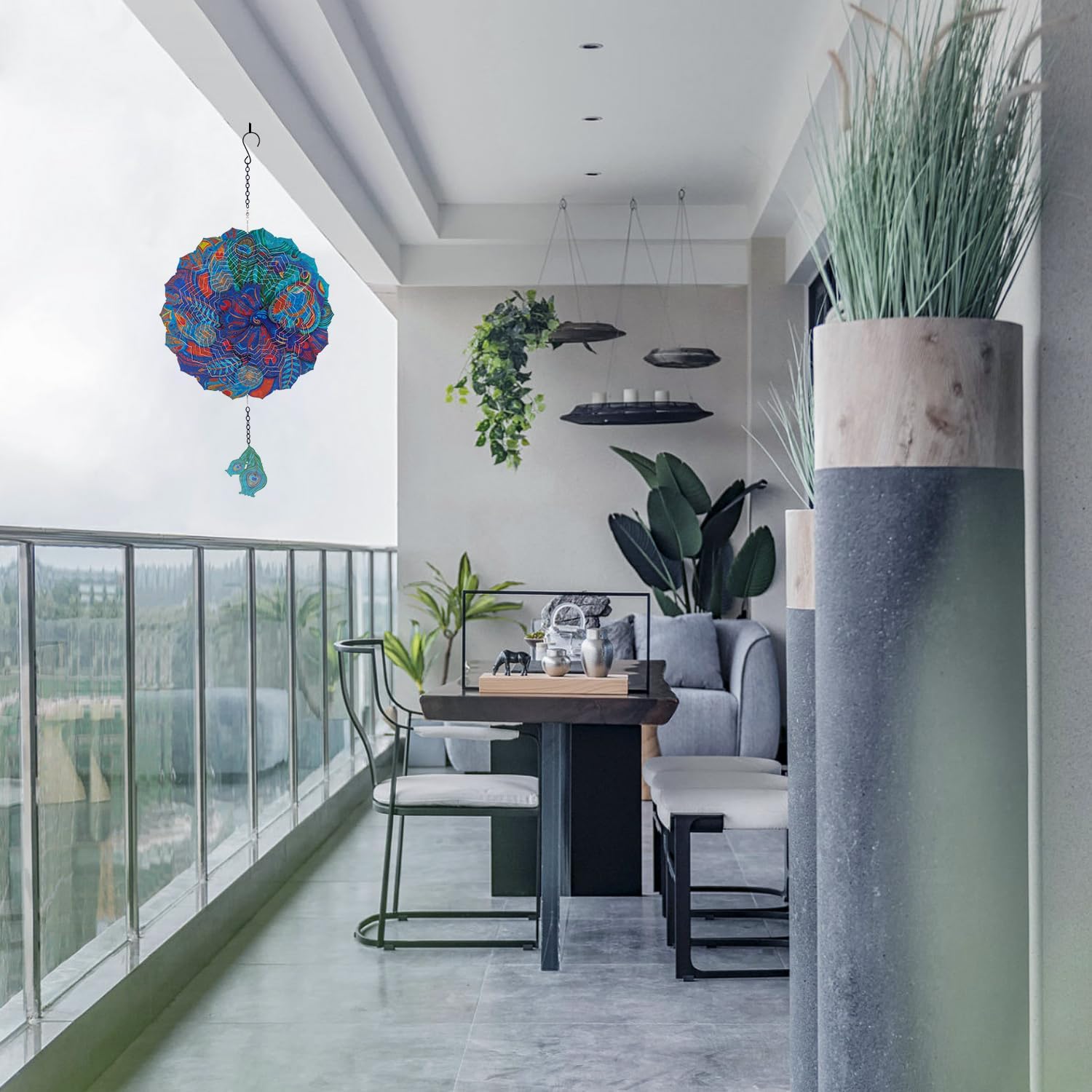 - BEAUTIFUL AND PRACTICAL: This 3D wind spinners is a multi-functional hanging decoration. It can be used as decoration to make your porch, balcony or courtyard more beautiful and elegant. The quiet rotation won't disturb your rest, and it can also drive away birds you don't like.