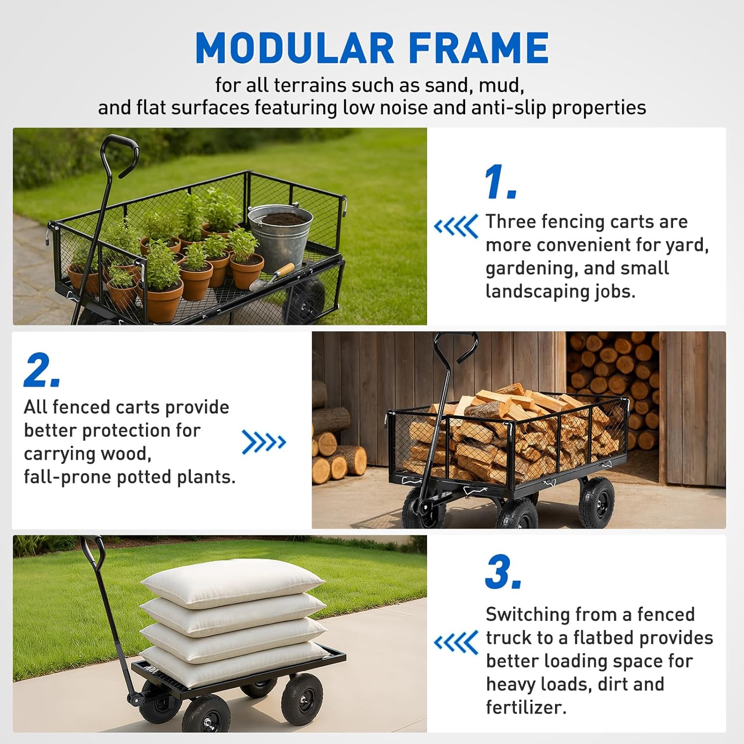 - 2-in-1 Convertible Design – Switch between a fenced cart and flatbed for different loads, with a spacious 7.69 cu. ft. cargo area