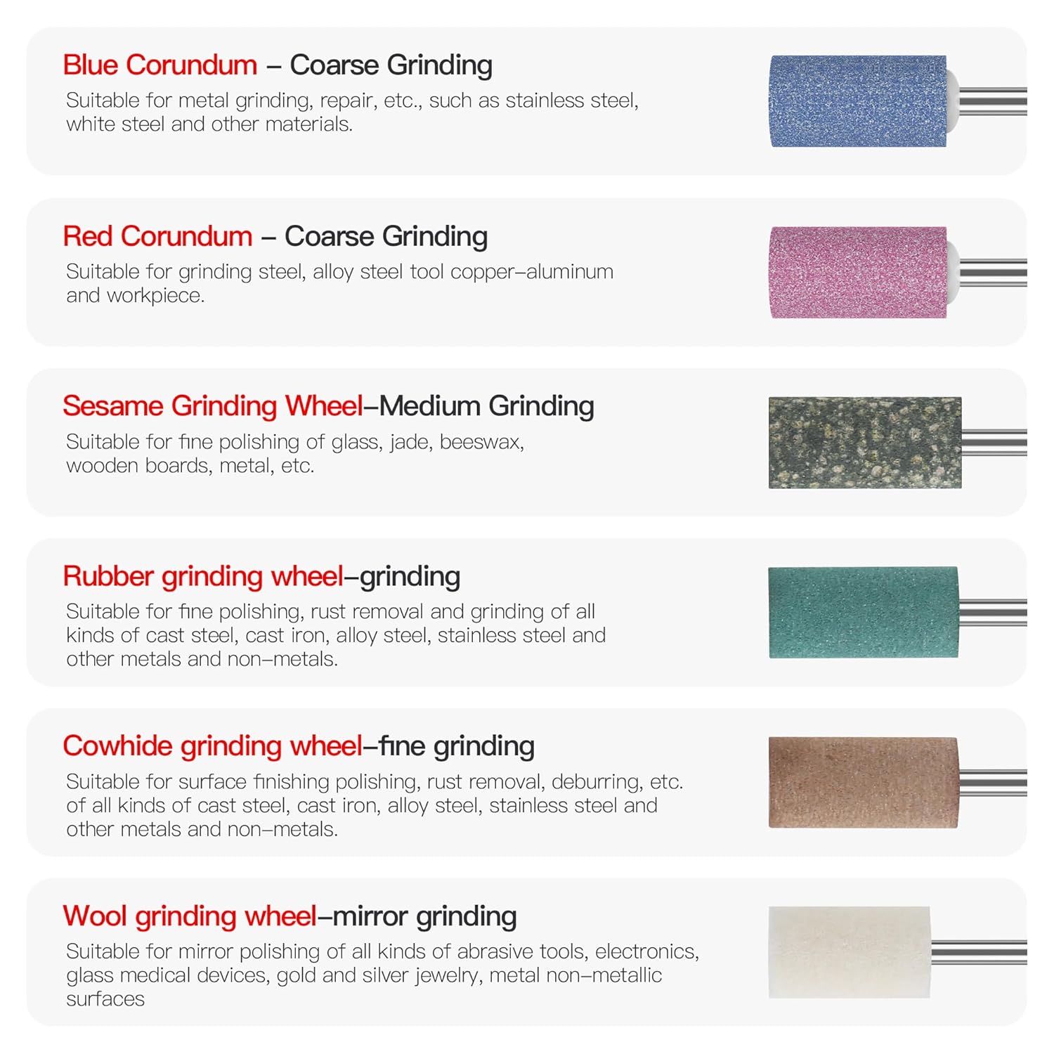 - √【Usage】Can be installed on electric tools such as grinders, grinding machines to deburring, surface grinding, time-saving. The grinding wheels for drills are available in sharp bullet and cylindrical shapes, designed to fit into tight spaces for grinding and shaping tasks. Meet your different grinding needs.