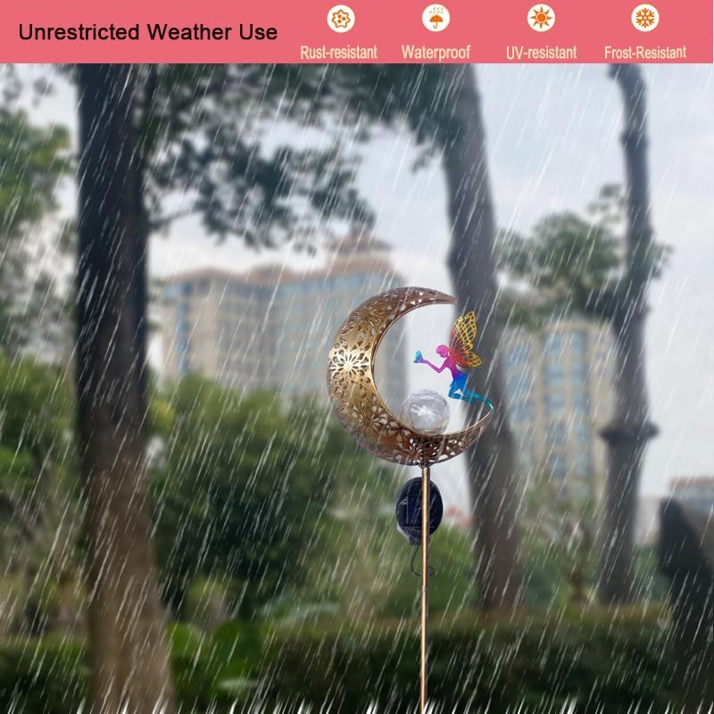 - 【Solar Moon Fairy Lights】Solar lights outdoor garden decor,These garden lights design with fairy moon. Solar lights outdoor add attractive landscaping lighting for your lawn garden backyard or path, making your garden more beautiful and inviting.