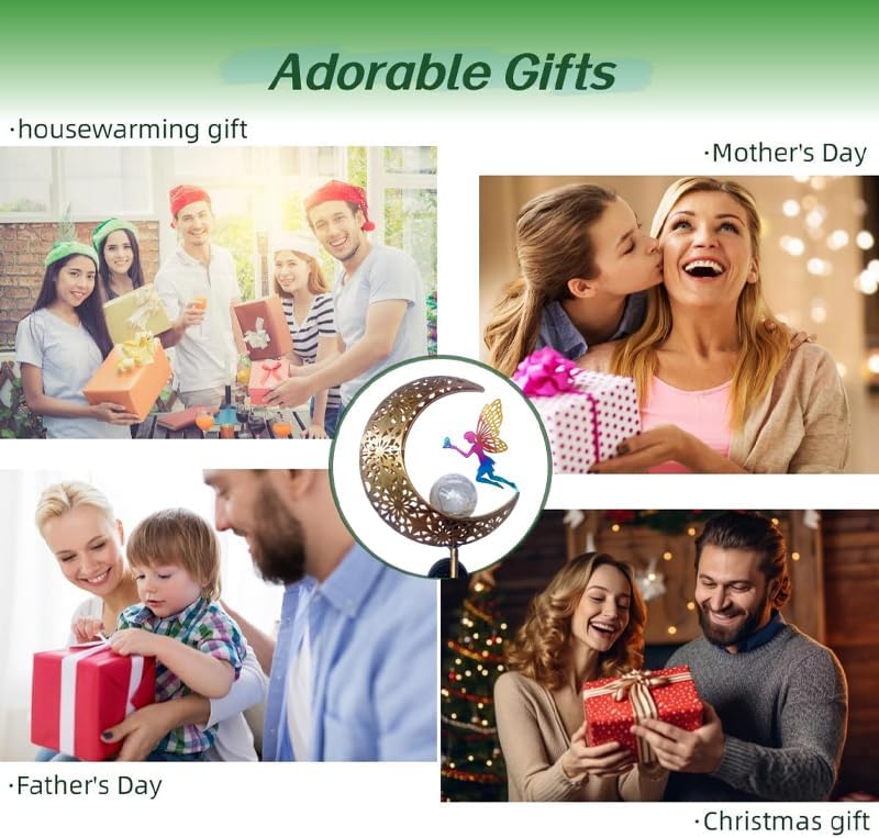 - 【A Great Garden Gift】The solar fairy moon lights comes in his own beautifully designedbox.Aperfectchoiceasagiftfor Mom/Grandma/Wife/Daughter/Sister/Aunt/Grandma,girlfriend/boyfriend,wife's wedding anniversary, child's birthday,mother's birthday, or Mother's Day, Father's Day,Thanksgiving Day,Valentine's Day and Christmas.