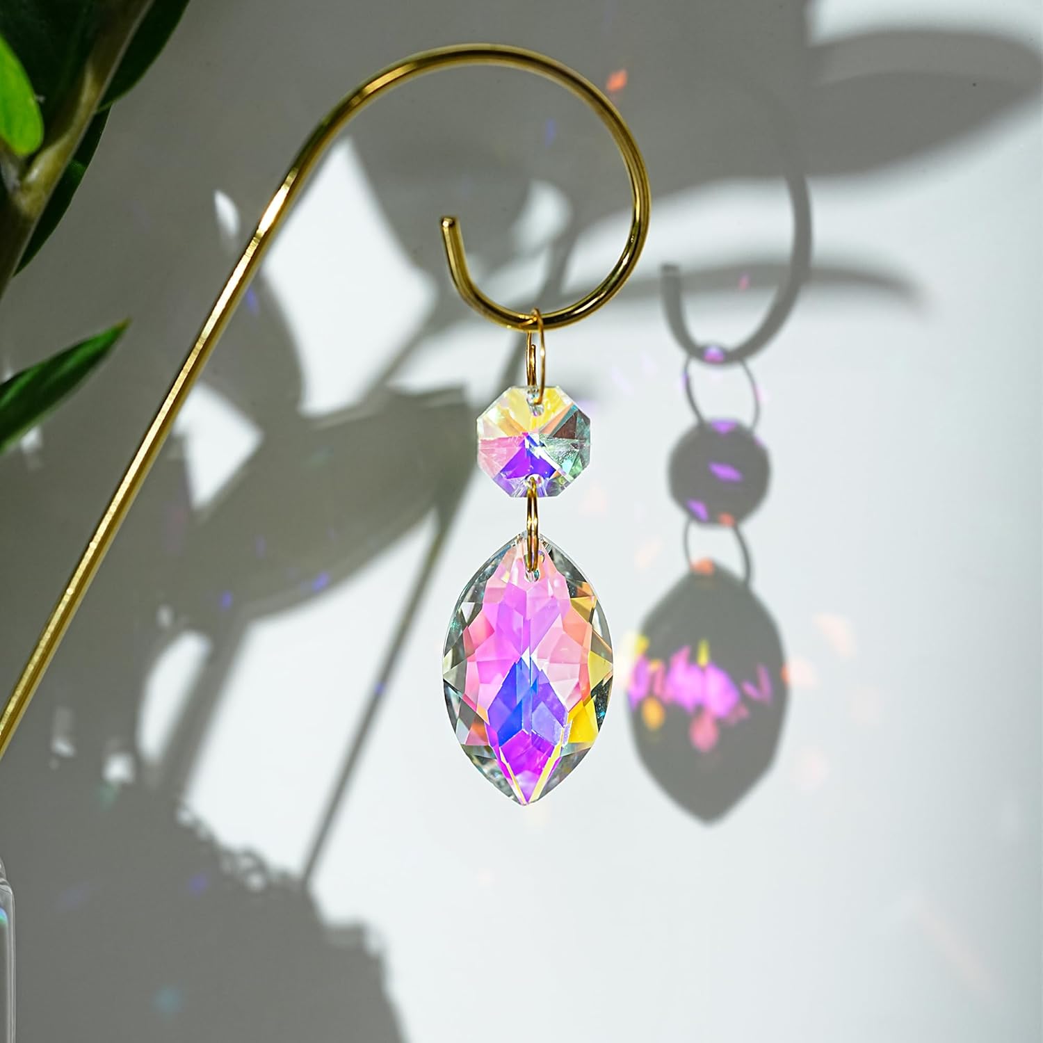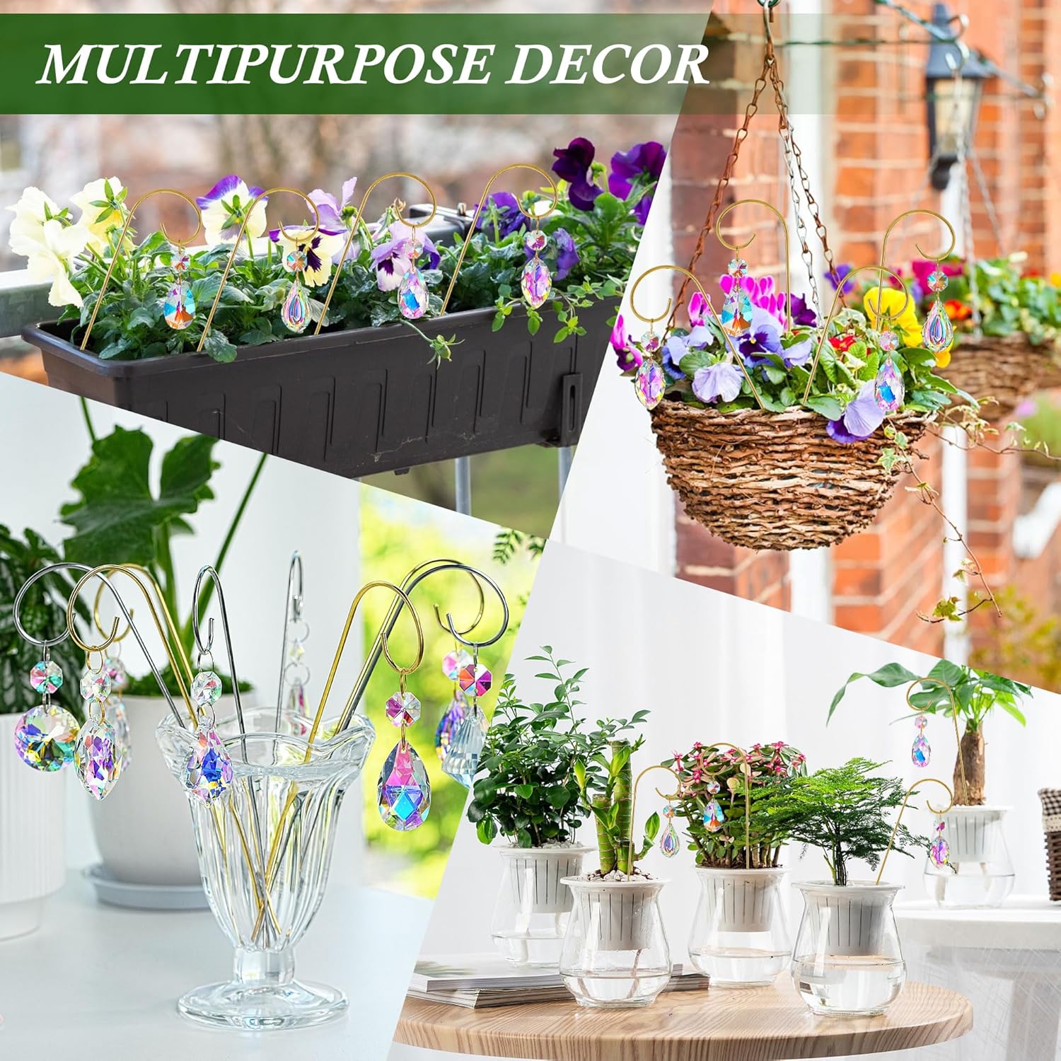 - Indoor Plant Accessories - Includes 4pcs AB colored crystal prisms suncatchers with gold plant stakes, perfect for 2-6’’ pots, terrariums, or windowsill gardens