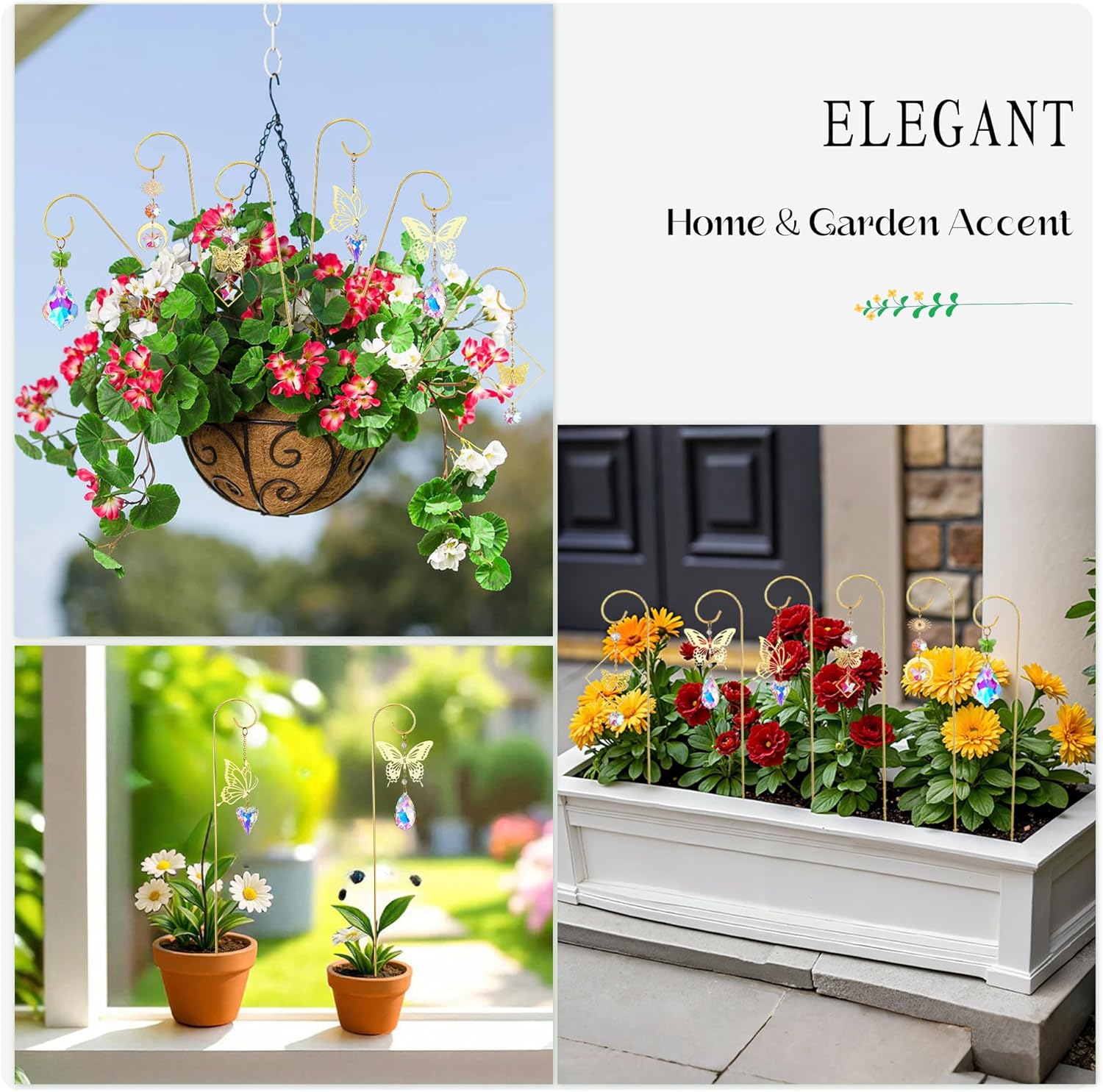 - Plant Decorations: Butterfly Suncatchers are made with crystal glass & metal, plant stake is made with electroplated iron