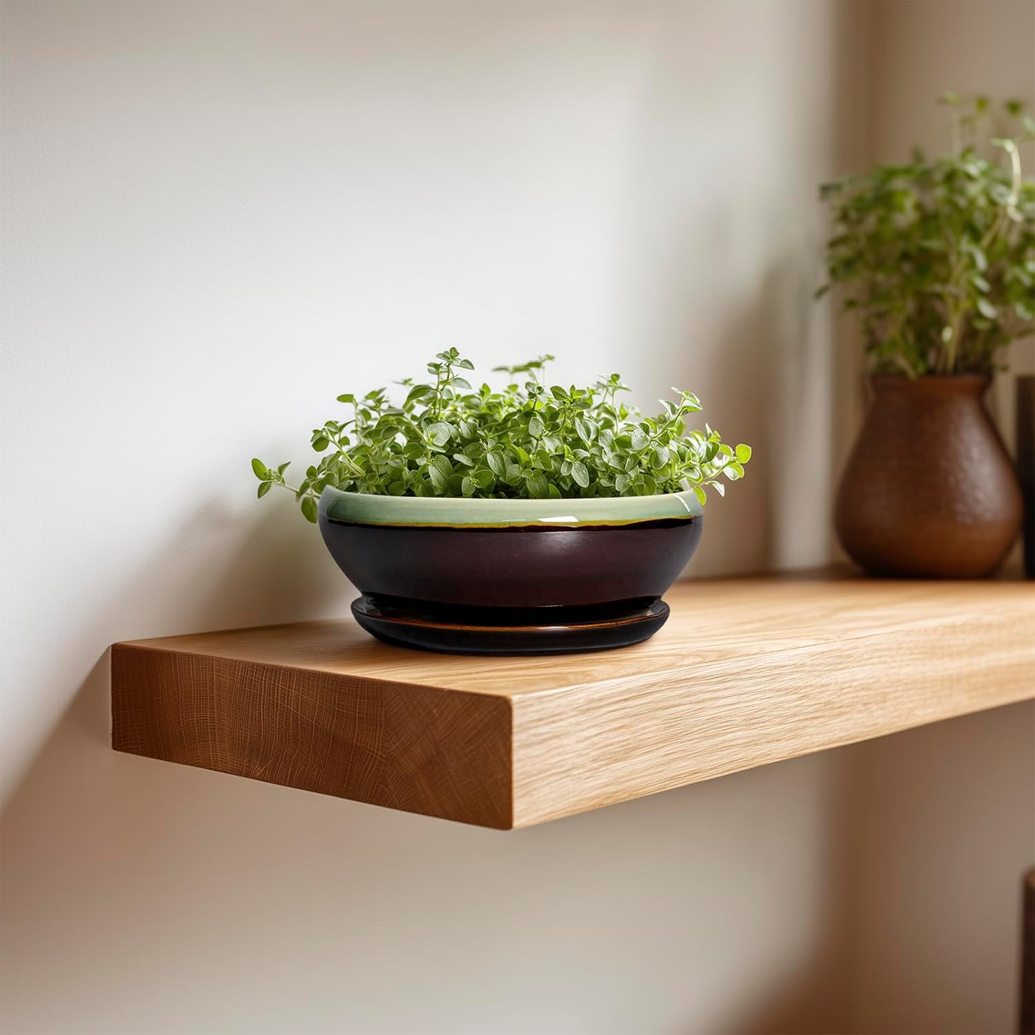 - Elegant Glazed Aesthetics: The shallow planters feature a beautiful ice-cracked glaze with a smooth surface that's easy to clean. Very suitable for plant lovers, adding some charm and style to your home