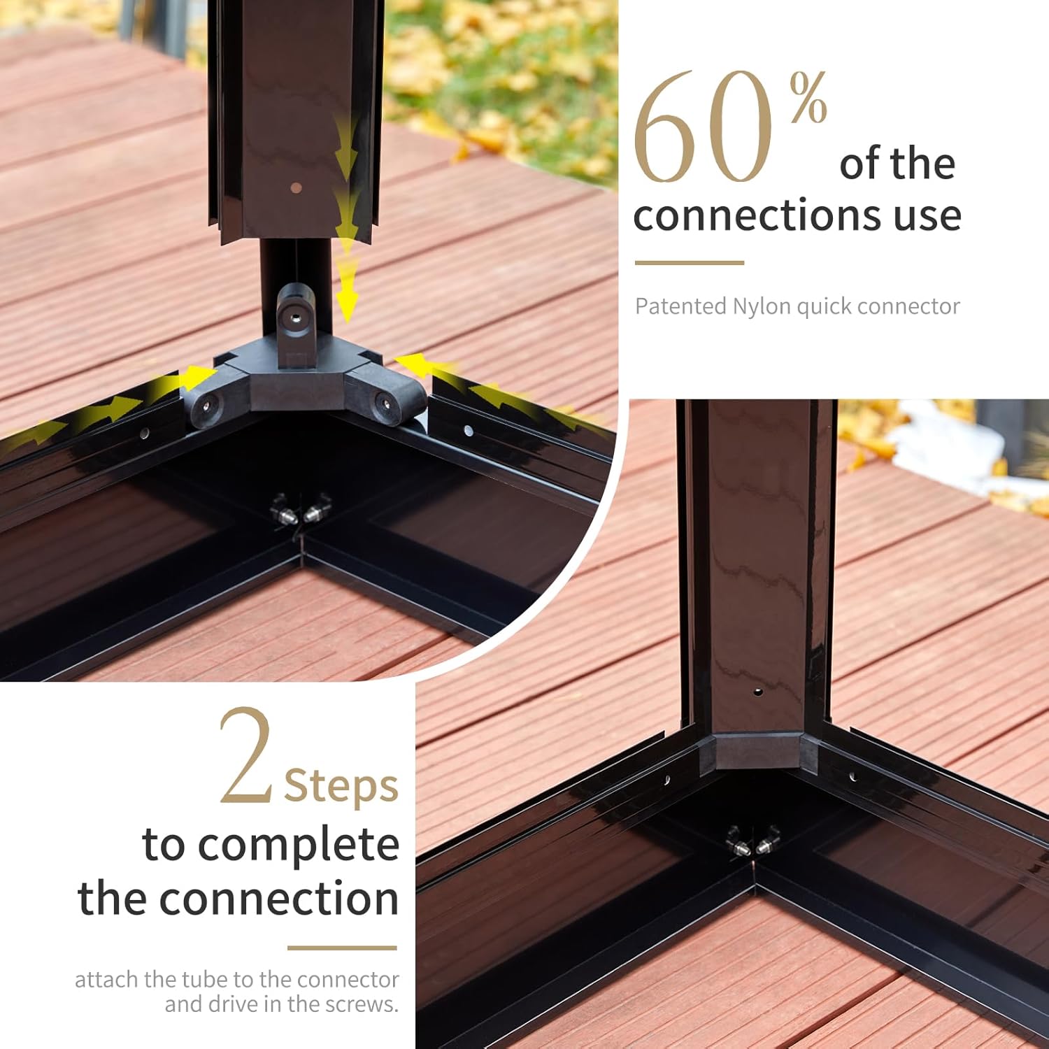 - Upgraded Patented Quick Connector: 60% of the connections use connector, used for over 10 years. screws are pre-embedded, saving installation time. 3 DIY enthusiasts can erect in 8 hours by saving half time of others