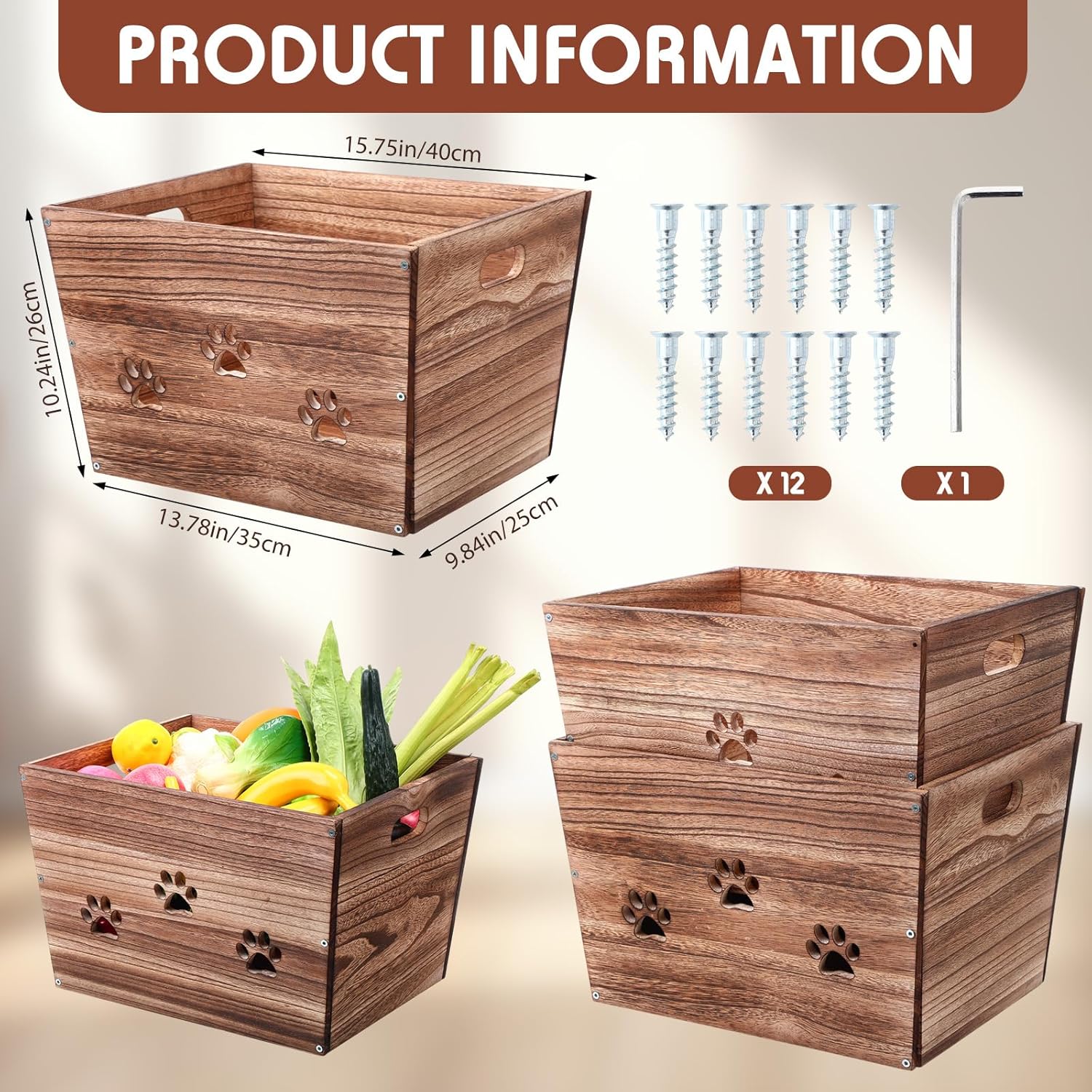 - Charming Paw Print Accents for Decor: delicate paw print carvings add whimsical charm to these decorative wooden crates; The subtle detailing brings warmth to nurseries, pet spaces, or farmhouse-style interiors; These artistic touches transform practical storage into stylish home accents that spark joy