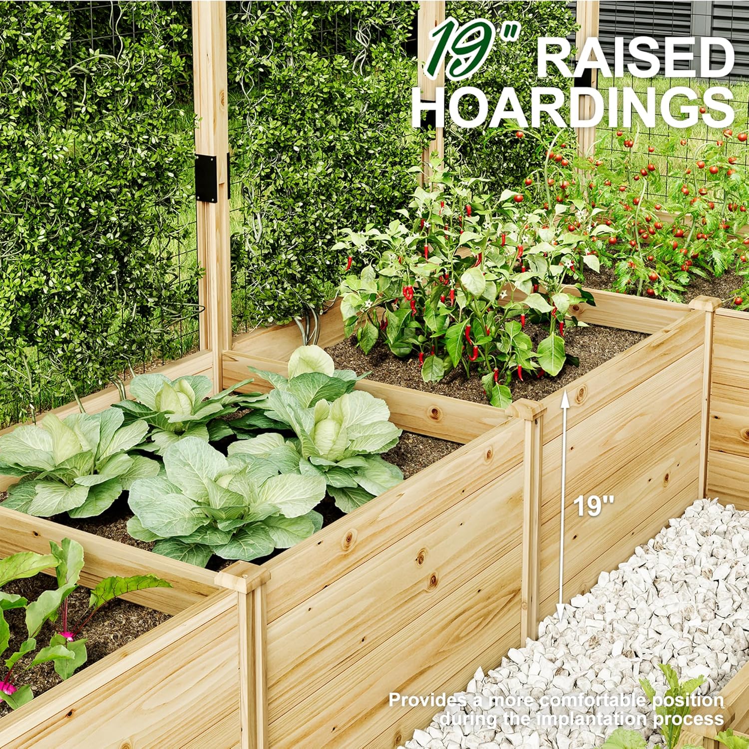 AMERLIFE Raised Garden Bed with Deer Proof Fence, 7.5Wx9Dx6H Outdoor Wooden Raised Garden Bed Planter with 19" Depth Planter Box