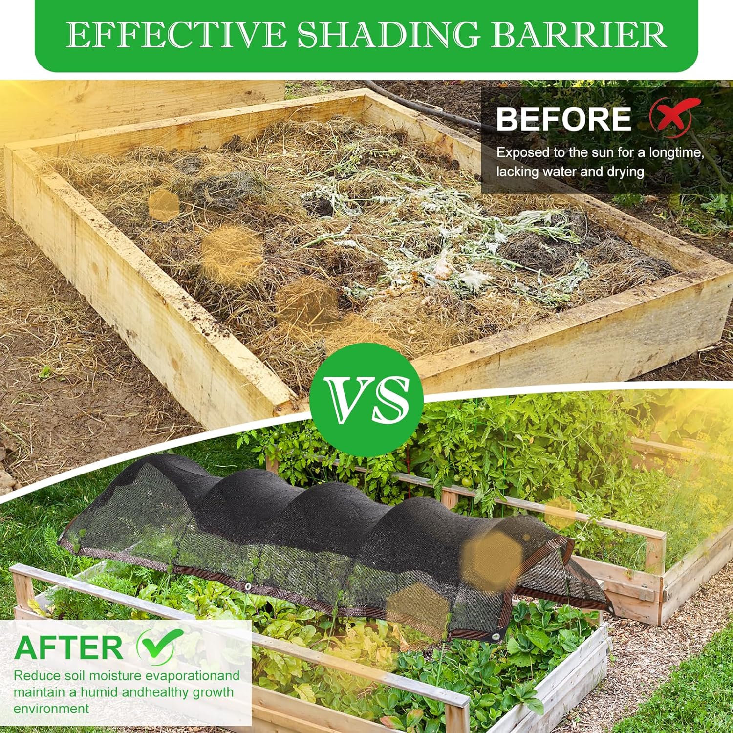 - 【Year-Round Versatility】Beyond summer shade, the hoops accept netting, frost cloth, or greenhouse film, so the same frame can guard against insects, cold snaps, or heavy rain. Perfect for raised beds, courtyards, flower borders, or vegetable plots—one kit, endless seasons of protection