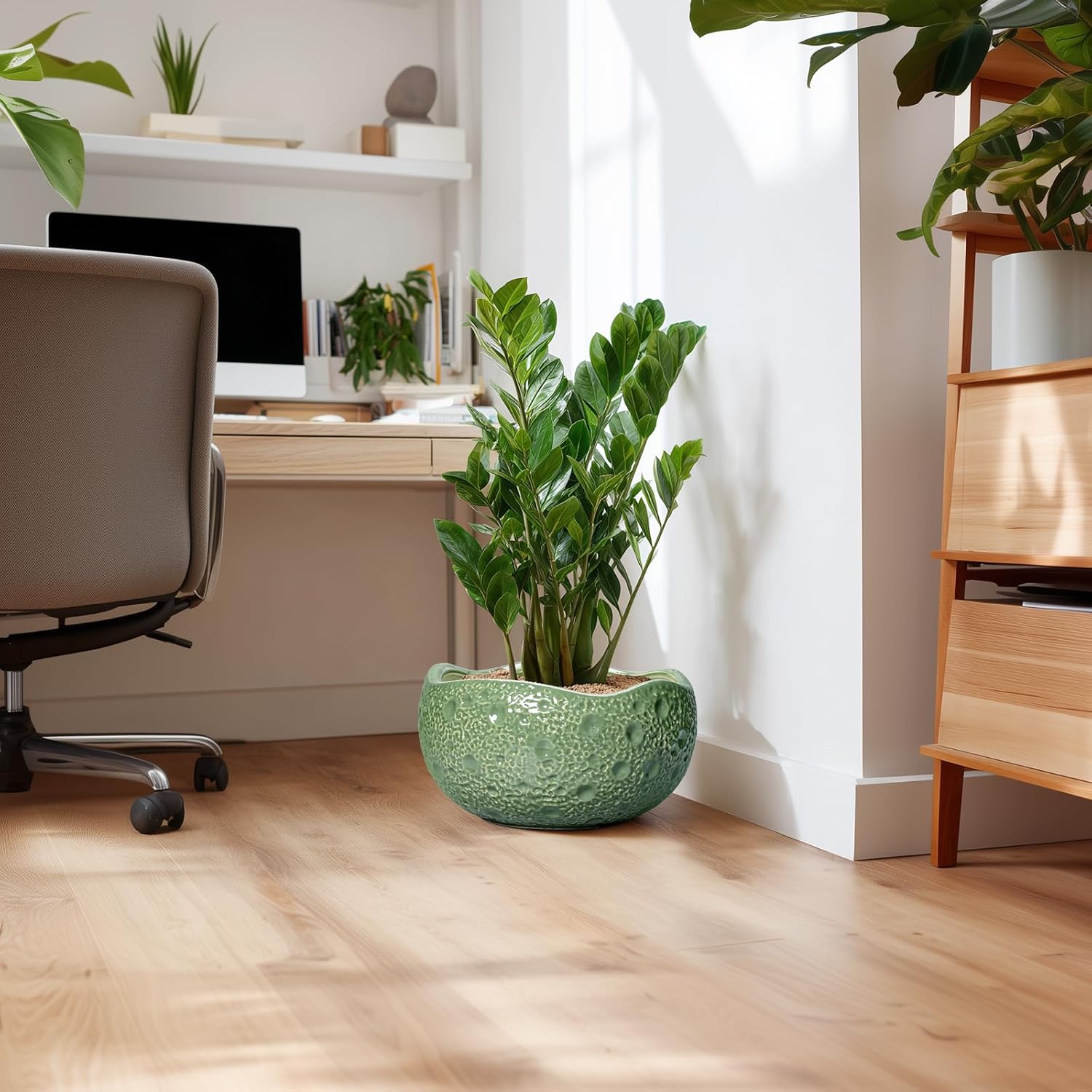 - Suitable for a variety of plants: This green planter is an ideal choice for growing bonsai tree, snake plant, orchids, money tree, zz plant, monstera, peace lily, pothos, bired of paradise, fiddle leaf fig, pachira aquatica, succulent plants, cacti, aloe vera, mint, rosemary, african violet, rainlily, parsley, chrysanthemum, herbs, and other indoor & outdoor plants
