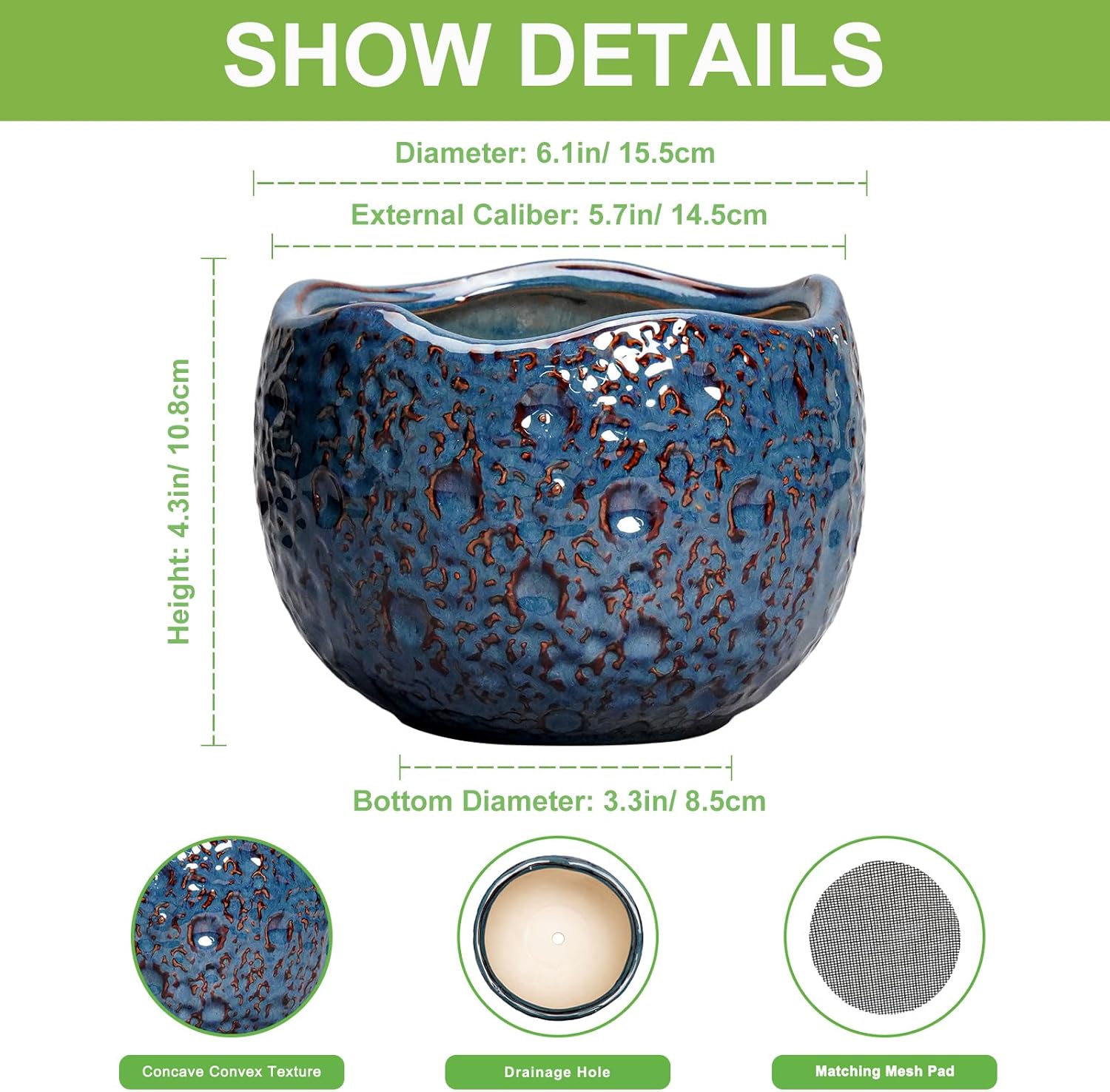 - Plant Pot with Drainage Hole: There is a drainage hole at the bottom of this ceramic flower pot, which can drain excess water and maintain the health of the plant roots. The blue planter includes a drainage network, which can better reduce soil erosion